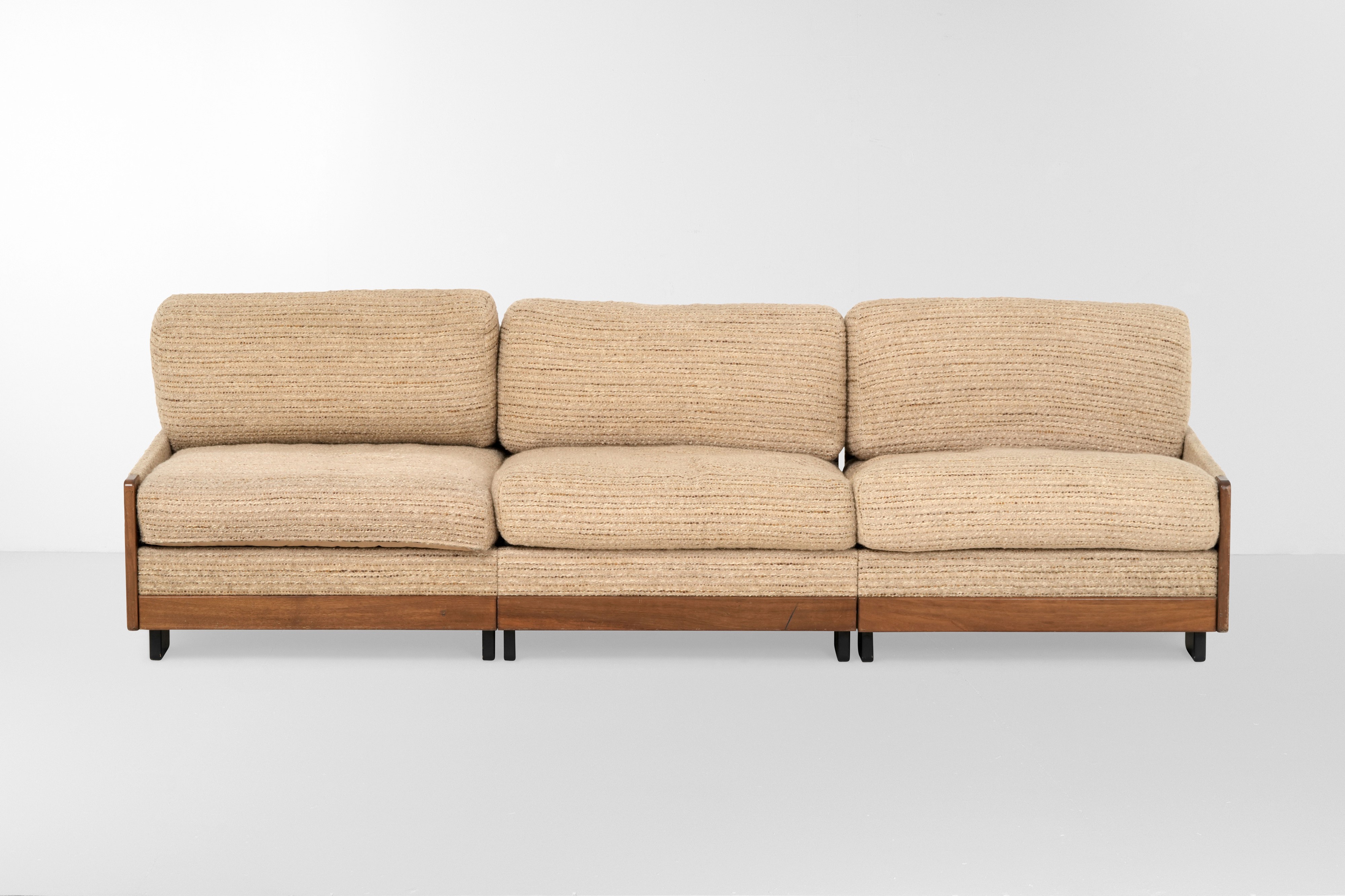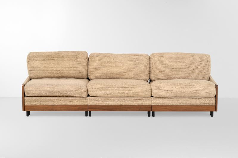 Struttura in legno, sostegni in legno ebanizzato e rivestimento in tessuto.