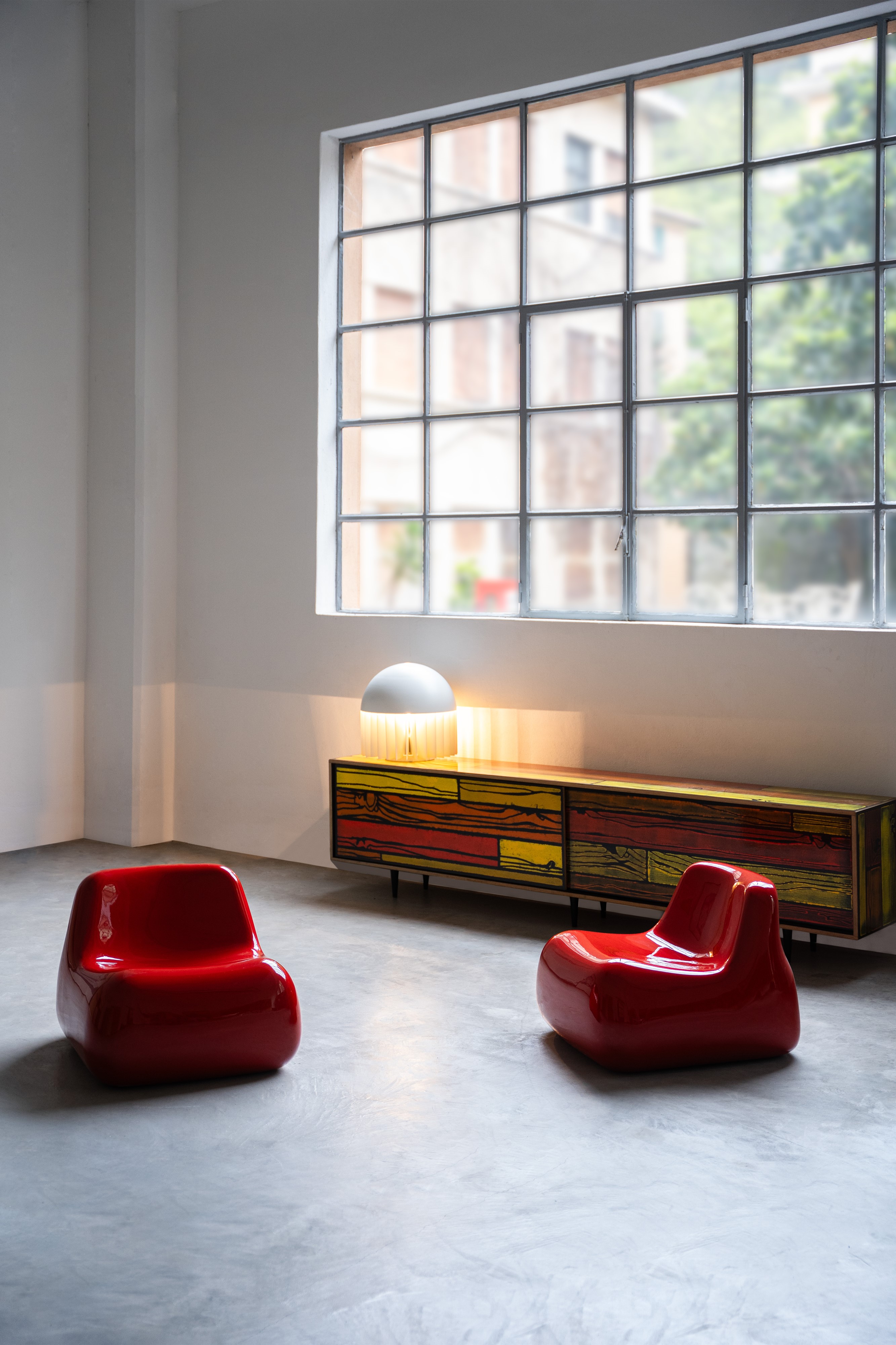 Struttura in fibroresina stampata e laccata.