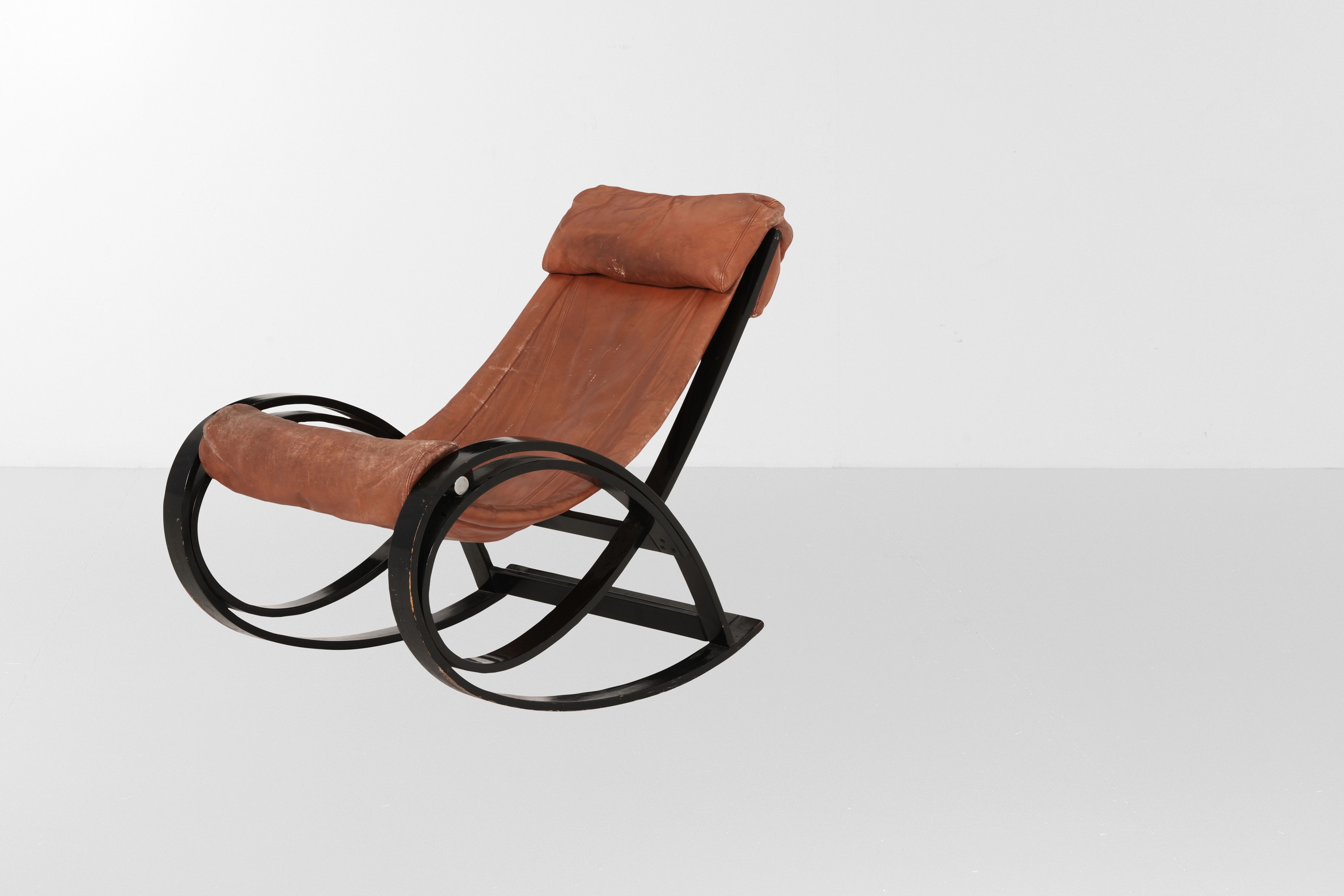 Struttura in legno curvato e laccato con rivestimento in pelle.