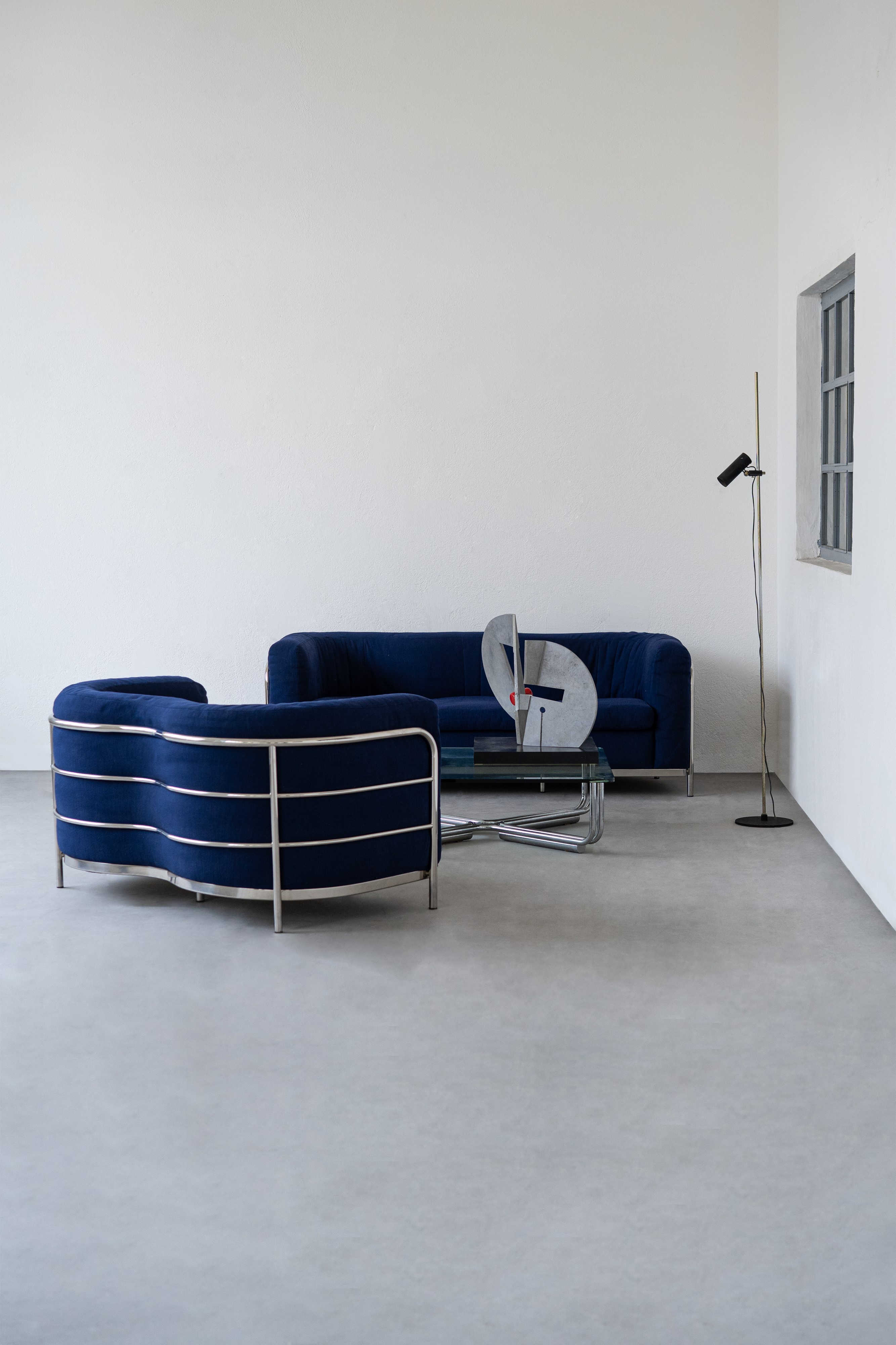 Struttura in acciaio cromato e piano in cristallo colorato.