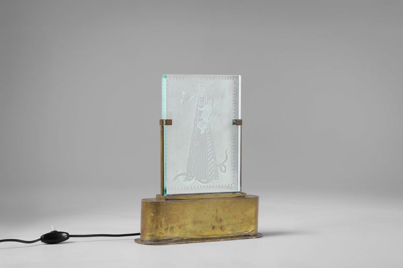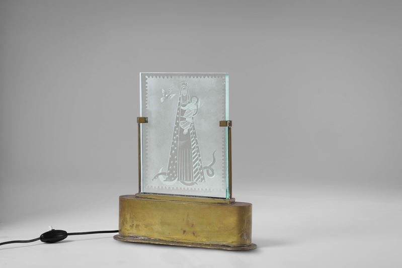 Struttura in ottone e cristallo inciso. Decoro a tema sacro modello n. 0388.