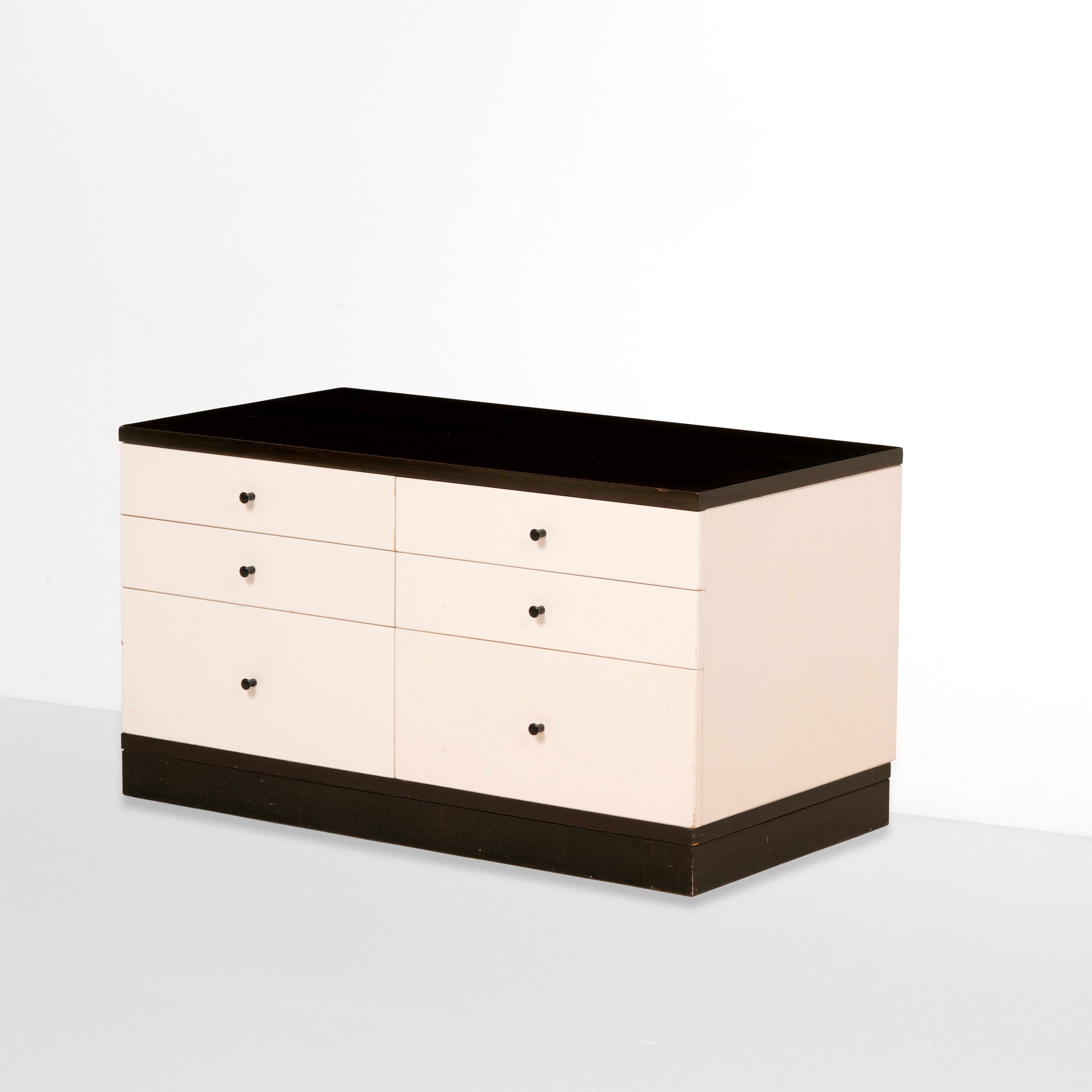 Struttura, cassetti e piano in legno laccato.
