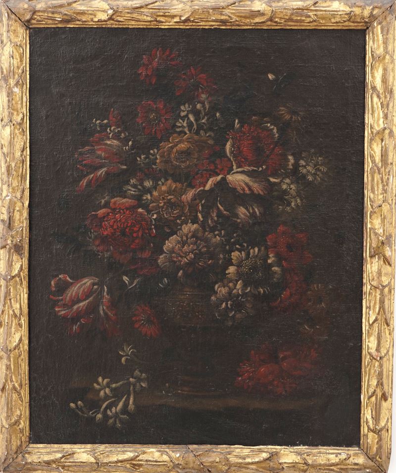 Scuola del XVII secolo Natura morta con vaso di fiori