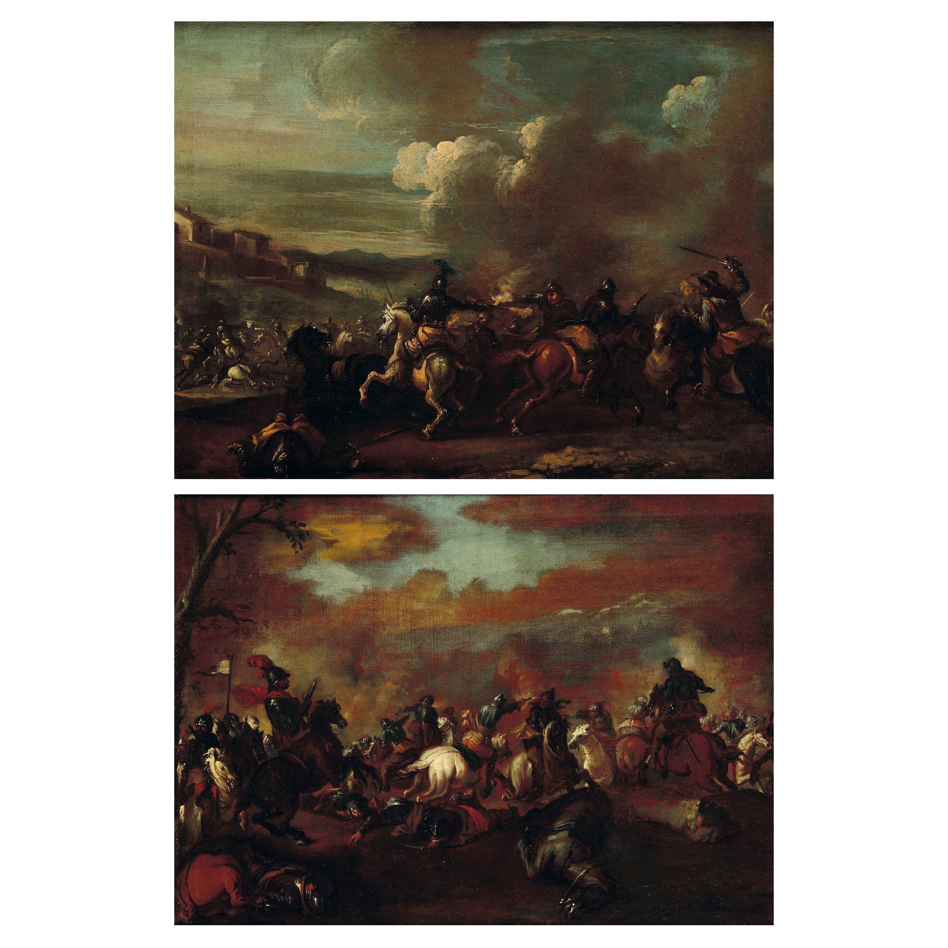 Scuola della fine del XVII secolo Scontri di cavalleria