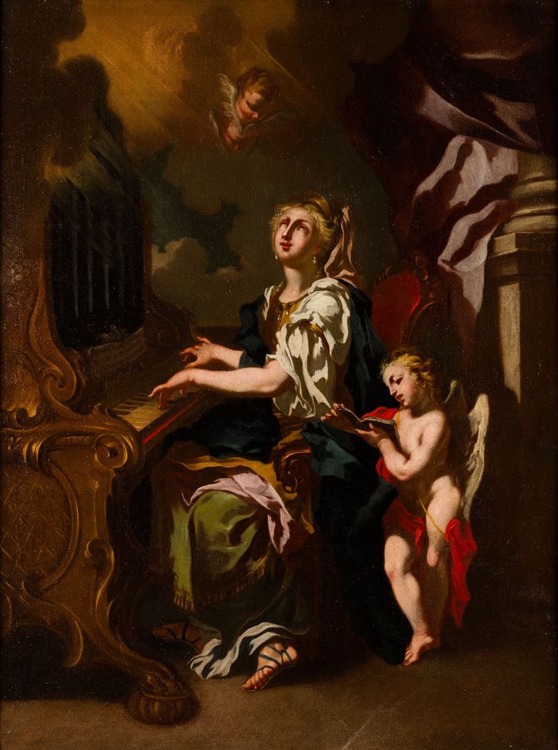 La presente composizione, raffigurante l'estasi di Santa Cecilia, si inserisce nel repertorio devozionale tardo-barocco come opera di Sebastiano Conca, uno dei protagonisti della pittura italiana del Settecento.