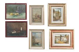 Lotto di sei dipinti a olio. XX secolo