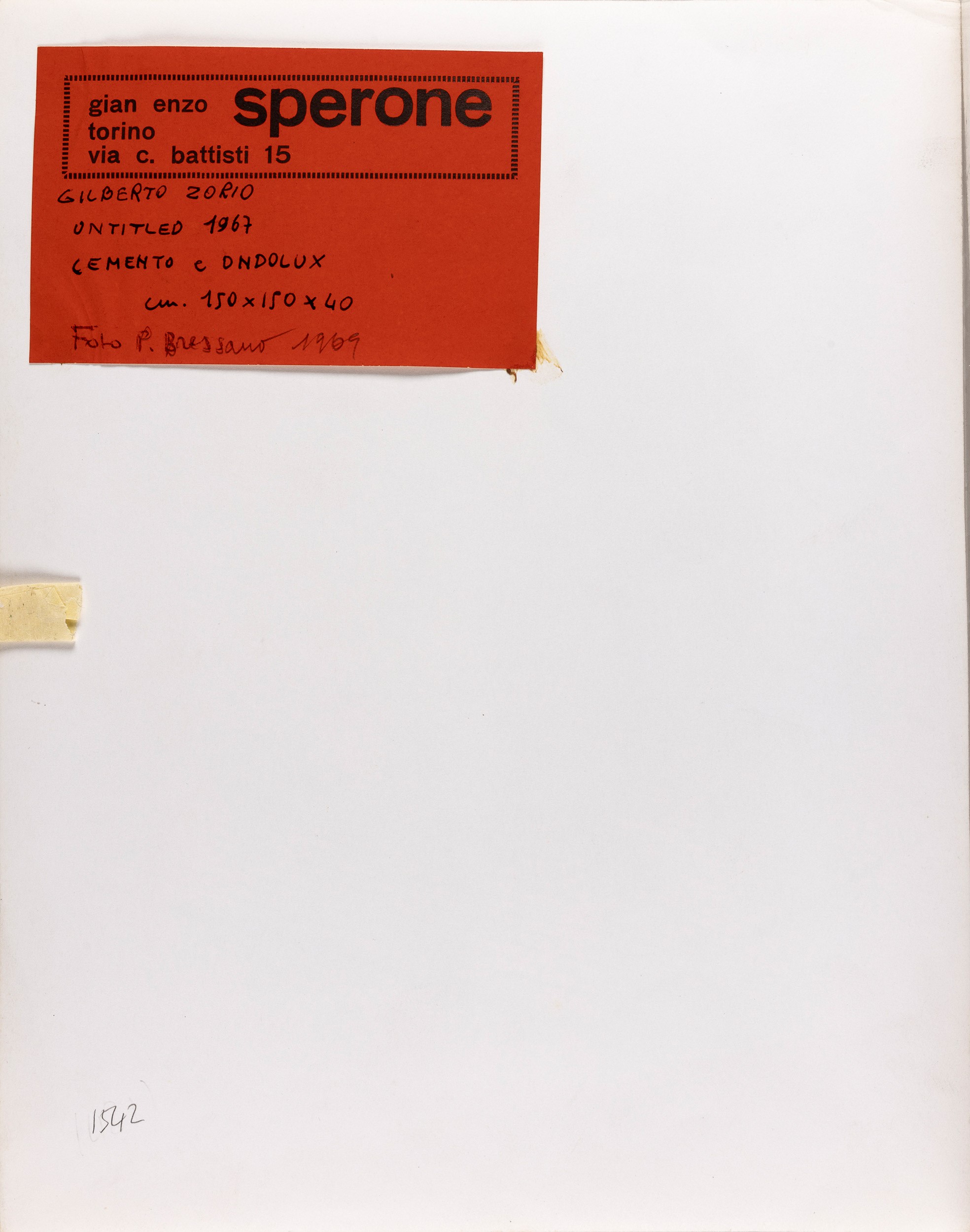 etichetta della Galleria Sperone al retro