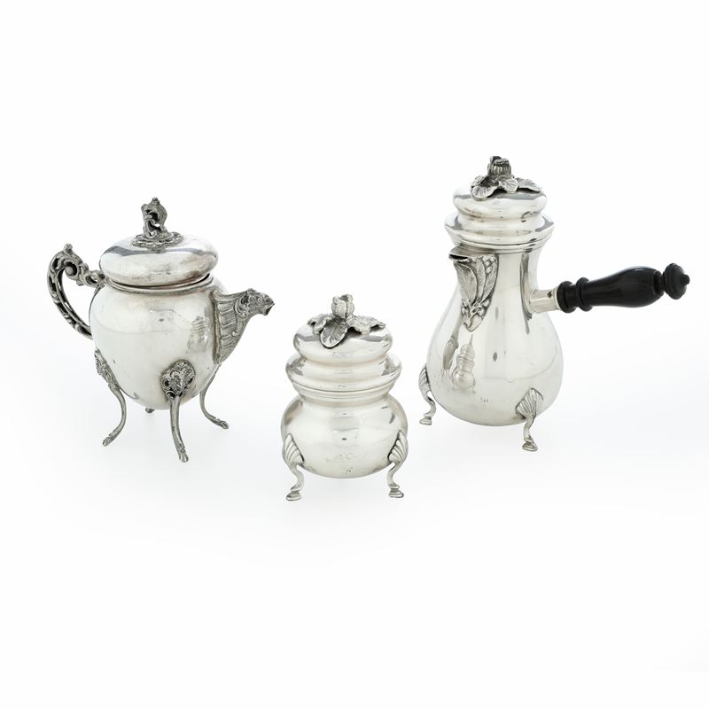 Caffettiera, zuccheriera e cioccolatiera. Argenteria italiana del XX secolo, argentieri differenti