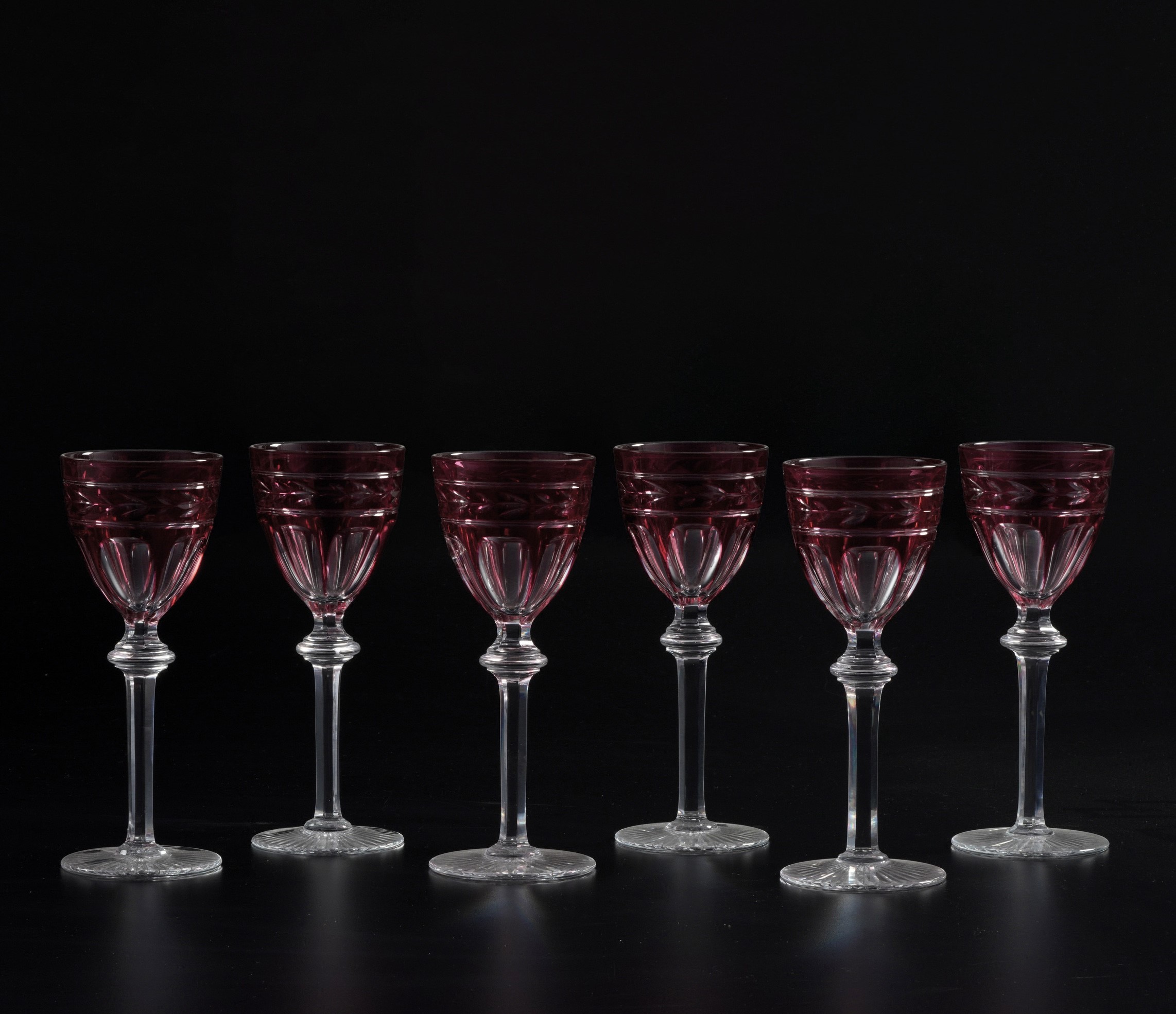 Cristallo trasparente e rosso porpora. Marca: assente. Altezza cm 20. Conservazione: ottima.