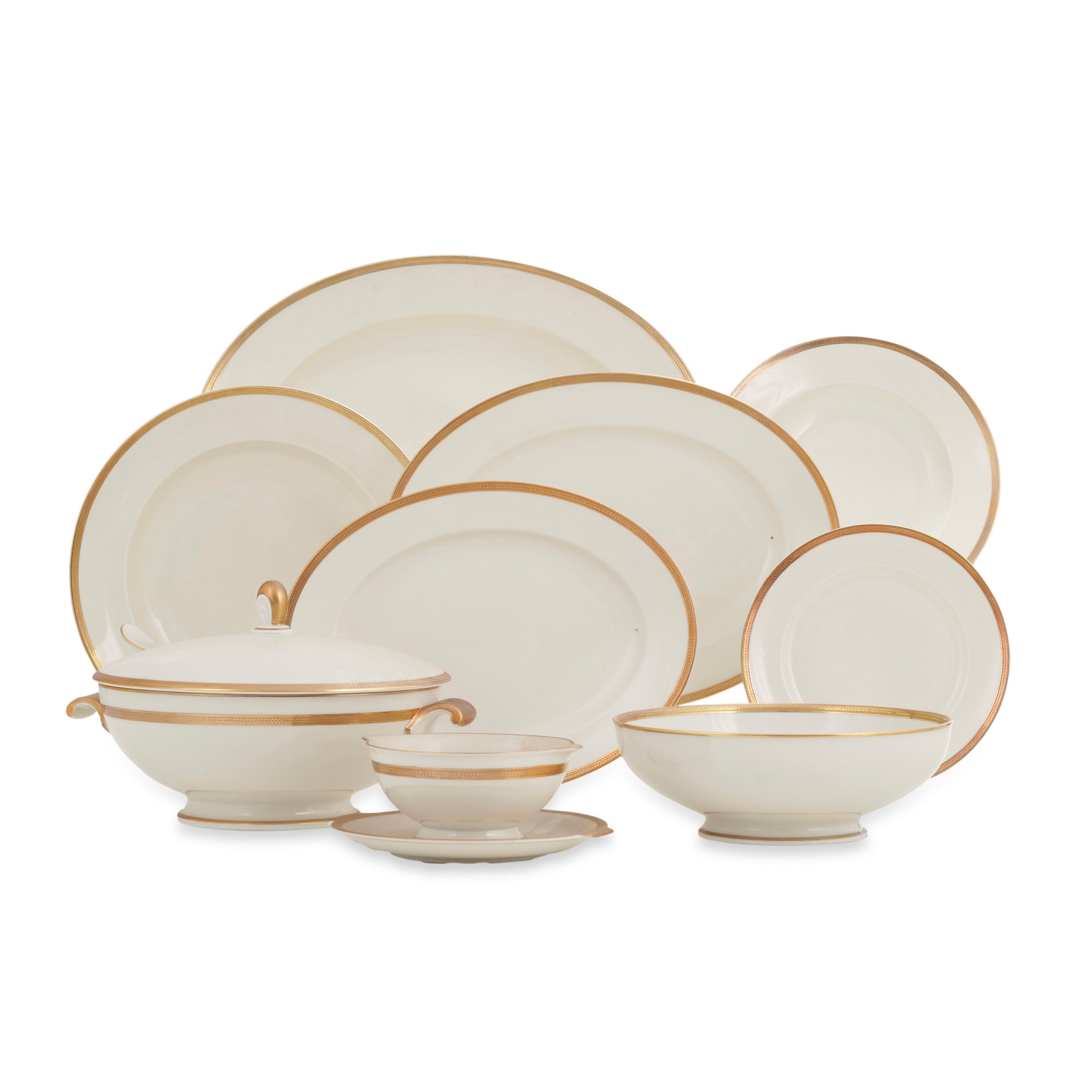 Il servizio per 12 persone conta 73 pezzi ed è così composto: 12 piatti fondi; 36 piatti piani; 12 piatti da dessert; 1 zuppiera; 1 insalatiera; 1 salsiera con mestolo; 2 piatti da portata tondi; 4 piatti da portata ovali; 2 vassoietti ovali; 2 alzatine.