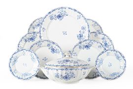Il servizio per 15 persone conta 55 pezzi ed è così composto: 5 piatti fondi; 30 piatti piani; 18 piatti da dessert; 1 zuppiera; 1 piatto da portata tondo.