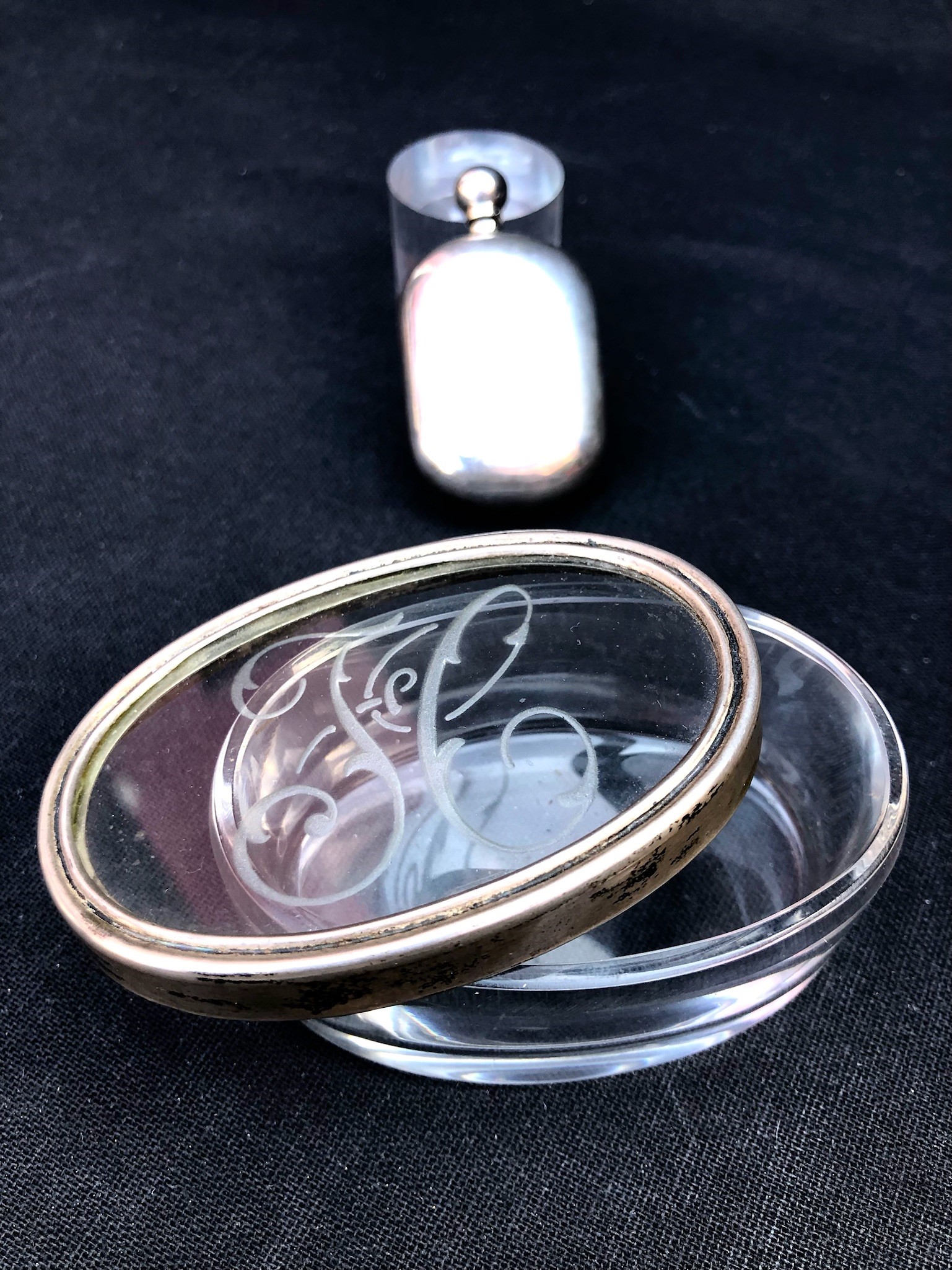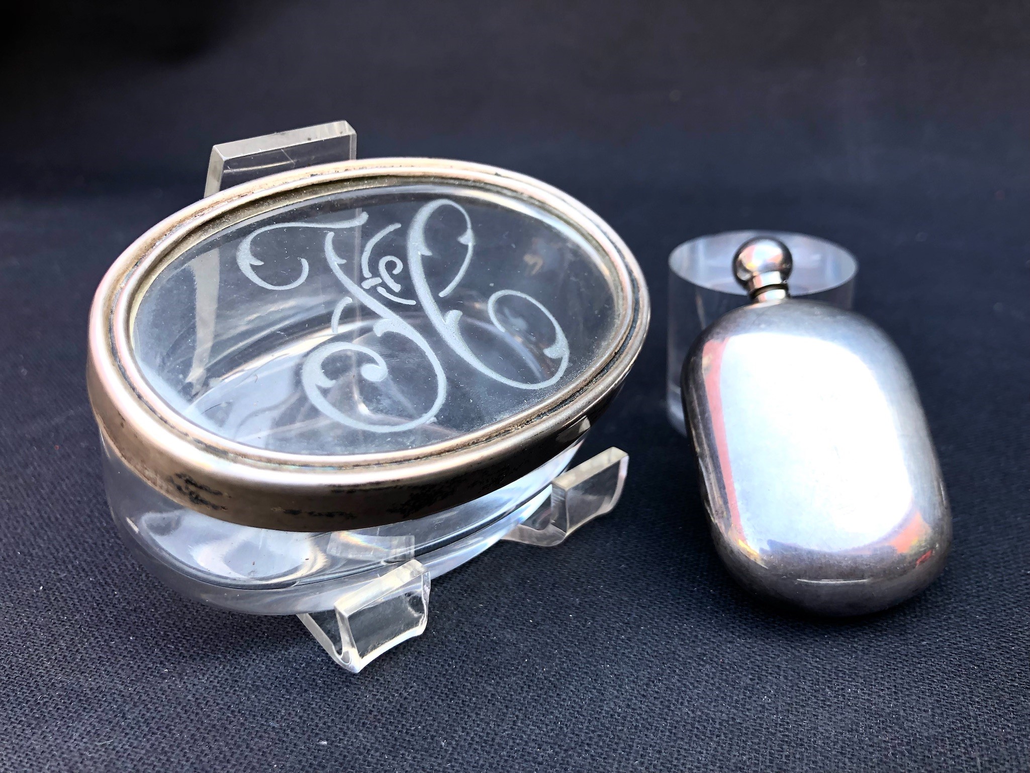 2 OGGETTI IN ARGENTO E VETRO MOLATO