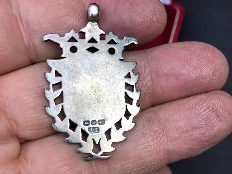 2 PENDENTI IN ARGENTO E ARGENTO DORATO, ENTRAMBI MARCHIATI. INGHILTERRA XIX SECOLO