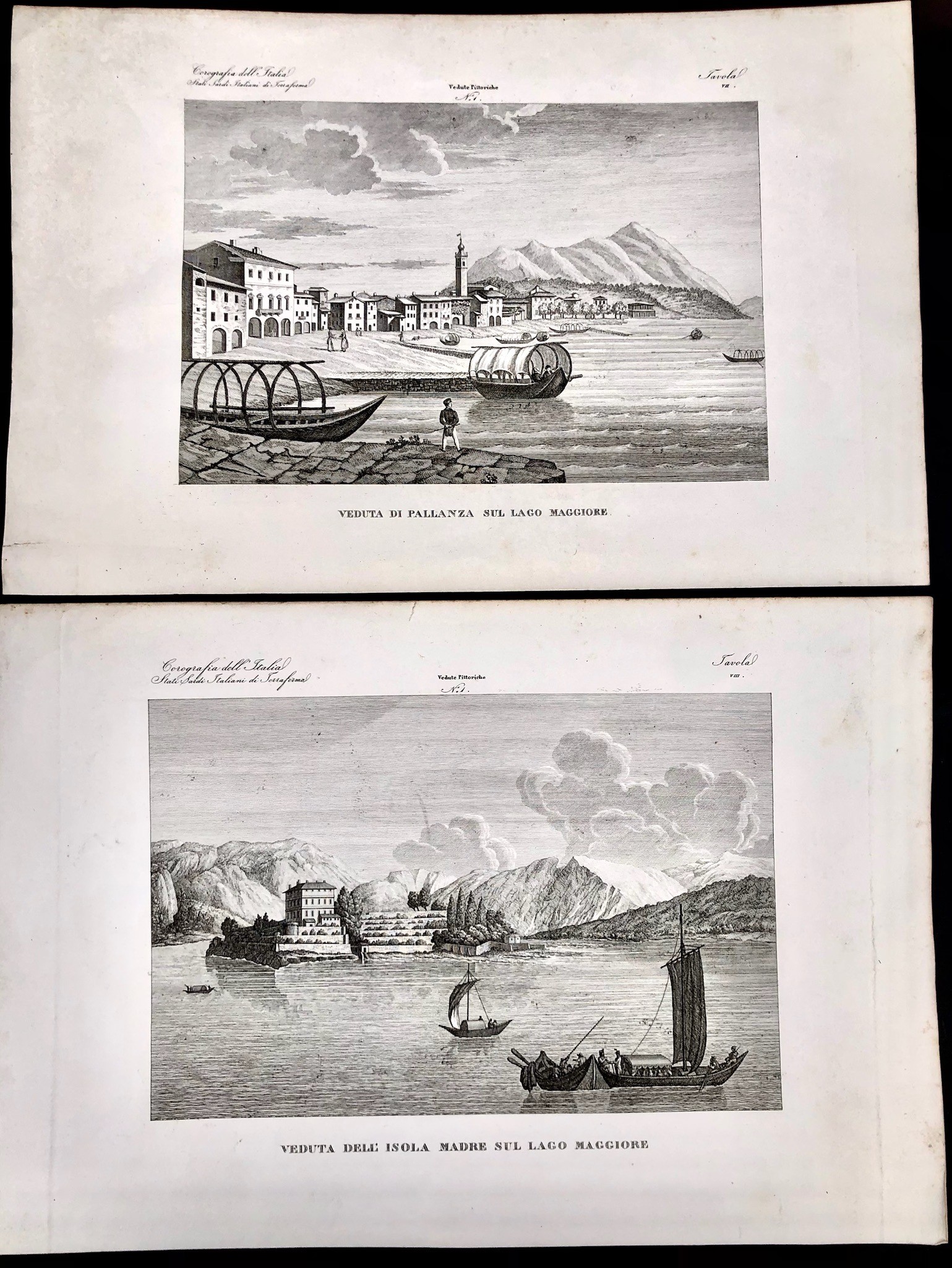 3 VEDUTE DEL LAGO MAGGIORE, XIX SECOLO, Misure delle carte: cm 44,5 x 29 e 36,5 x 32