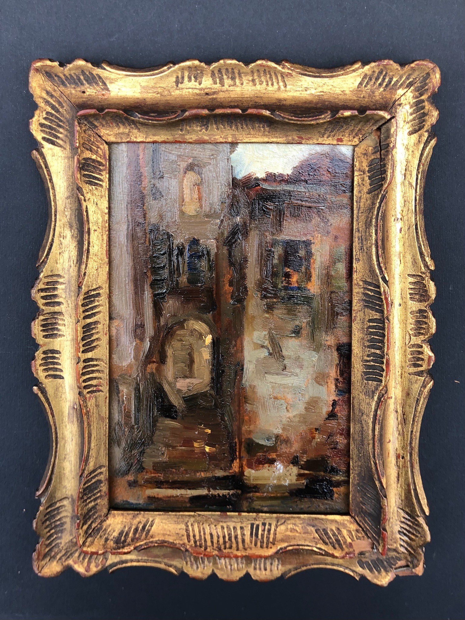 ANONIMO XIX-XX SECOLO, SCORCIO VENEZIANO, Olio su cartone, cm 11 x 16,5
