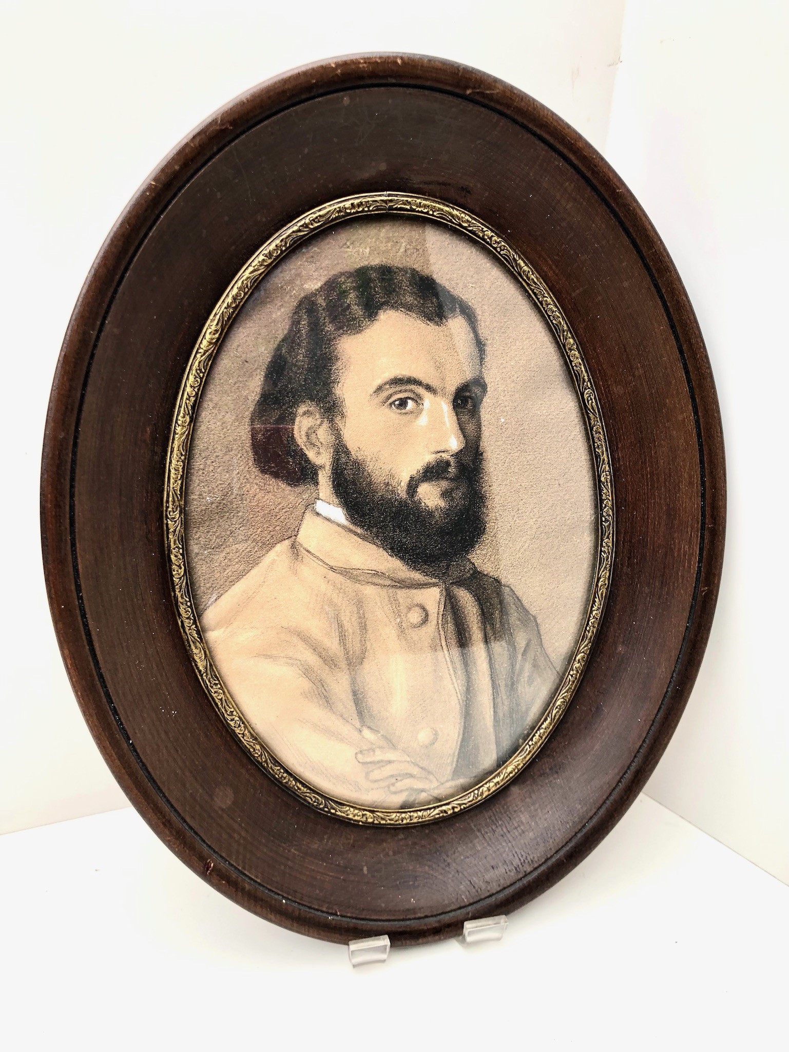 carboncino e biacca su carta bruna entro cornice ovale moderna. Misure inclusa cornice cm 25x19,2