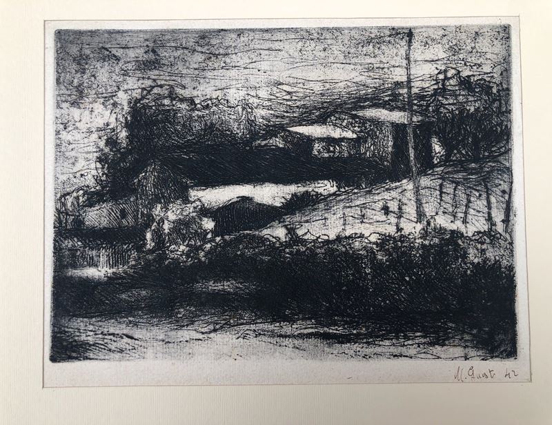 Marcello Guasti (1924-2019) “Paesaggio”, acquaforte e acquatinta,
