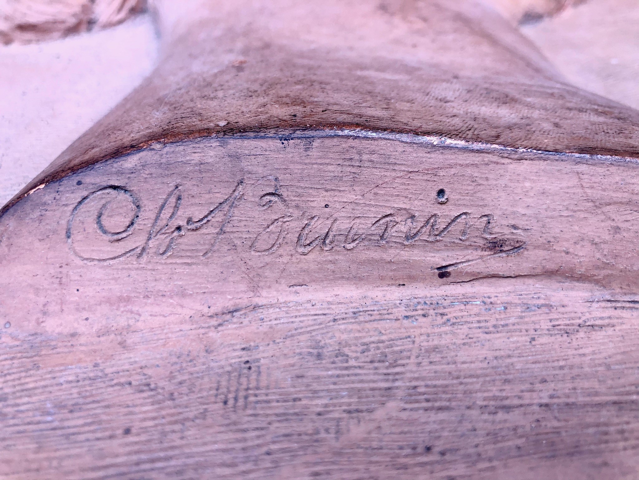 firma incisa lungo il bordo inferiore.