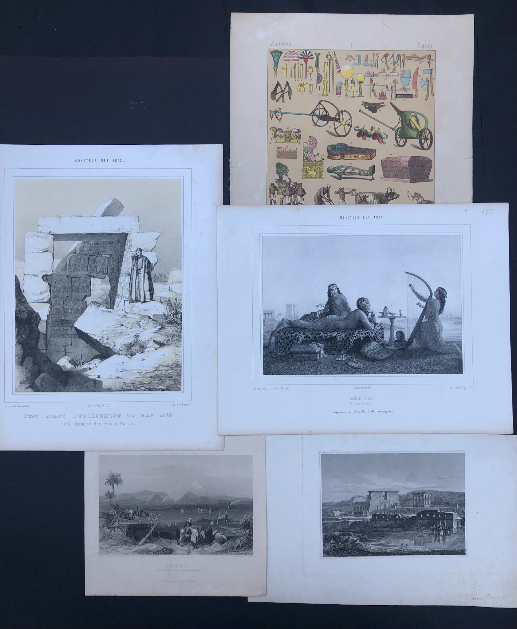 CINQUE STAMPE DEL XIX SECOLO CON SOGGETTI EGIZI