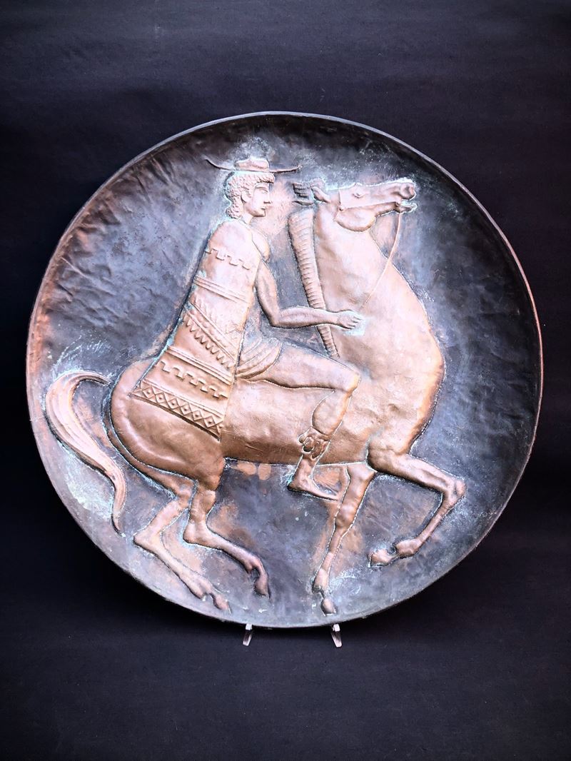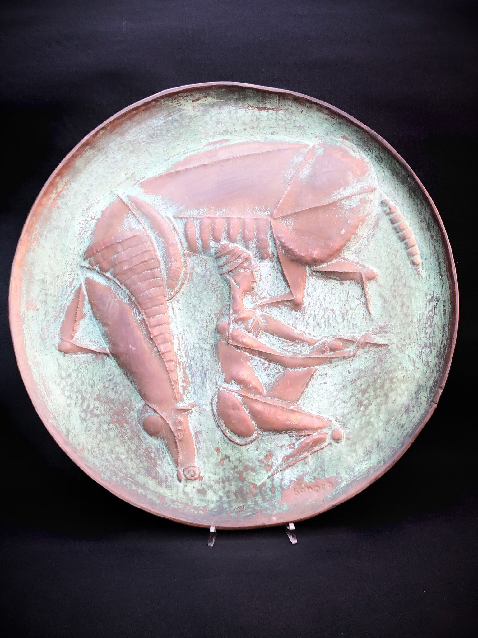 DUE GRANDI PIATTI IN RAME SBALZATO, 1950 ca.