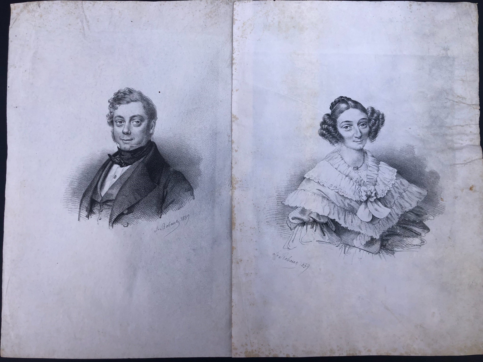 FELIX ROBANT (1799 -?) COPPIA DI RITRATTI SU PERGAMENA, 1839, cm 20 x 28,7