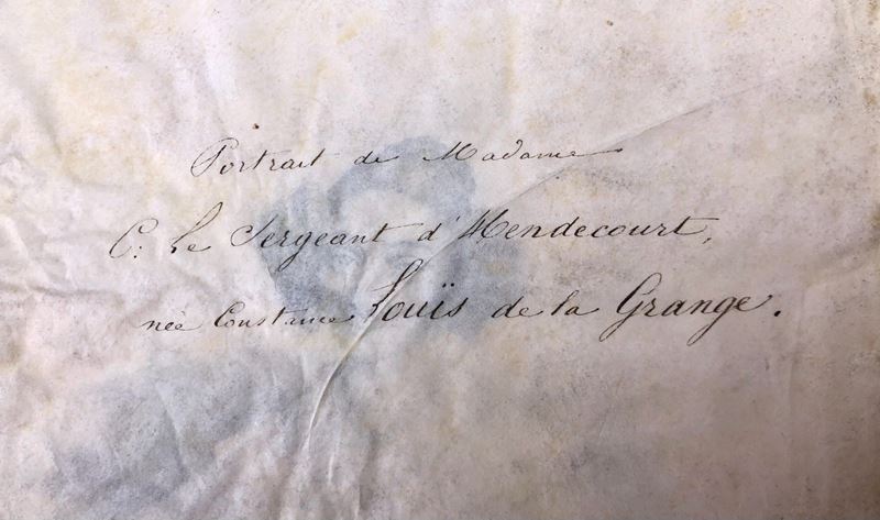 al retro due scritte ottocentesche vergate a mano ci dicono il nome dei 2 nobili coniugi ritrattati
