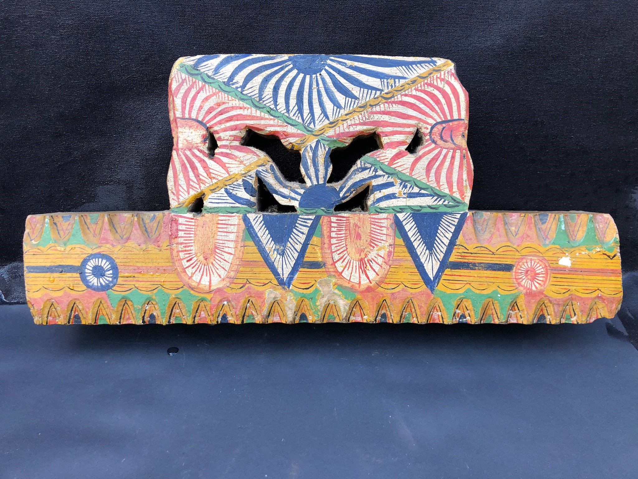 legno scolpito e dipinto su due fronti, misure cm 38,5 x 17,5