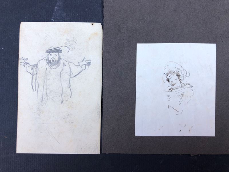 Alcune carte disegnate su due fronti, carta più grande cm 22,2x14; più piccola cm 5x6 ca.