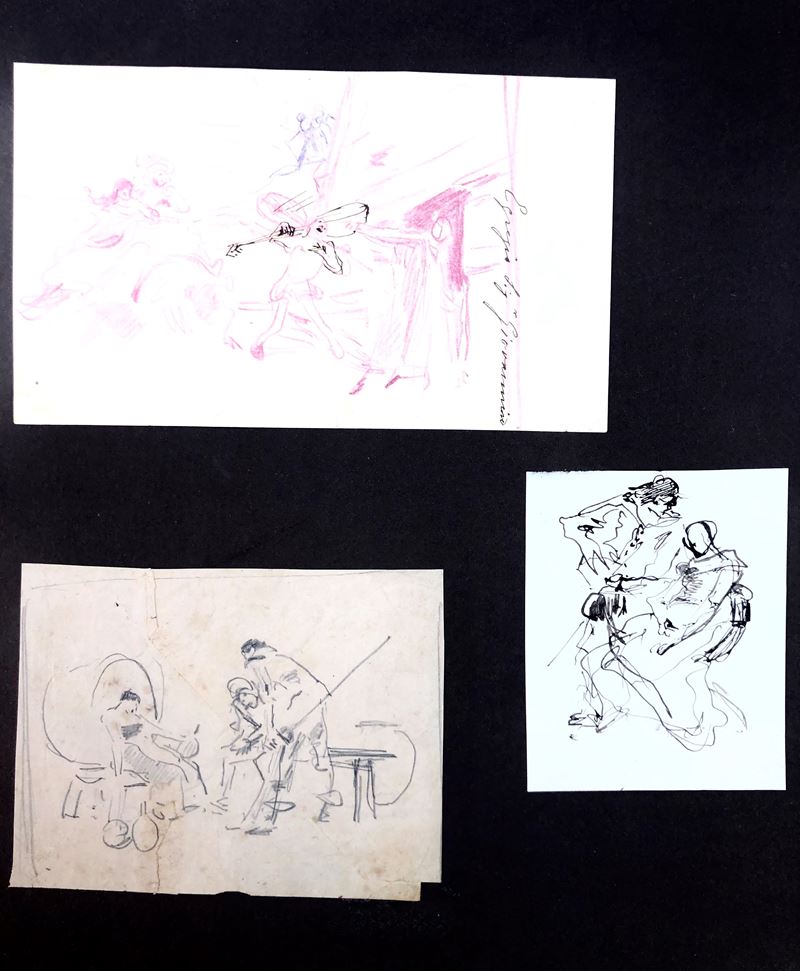 Alcune carte disegnate su due fronti, la più grande cm 21x18