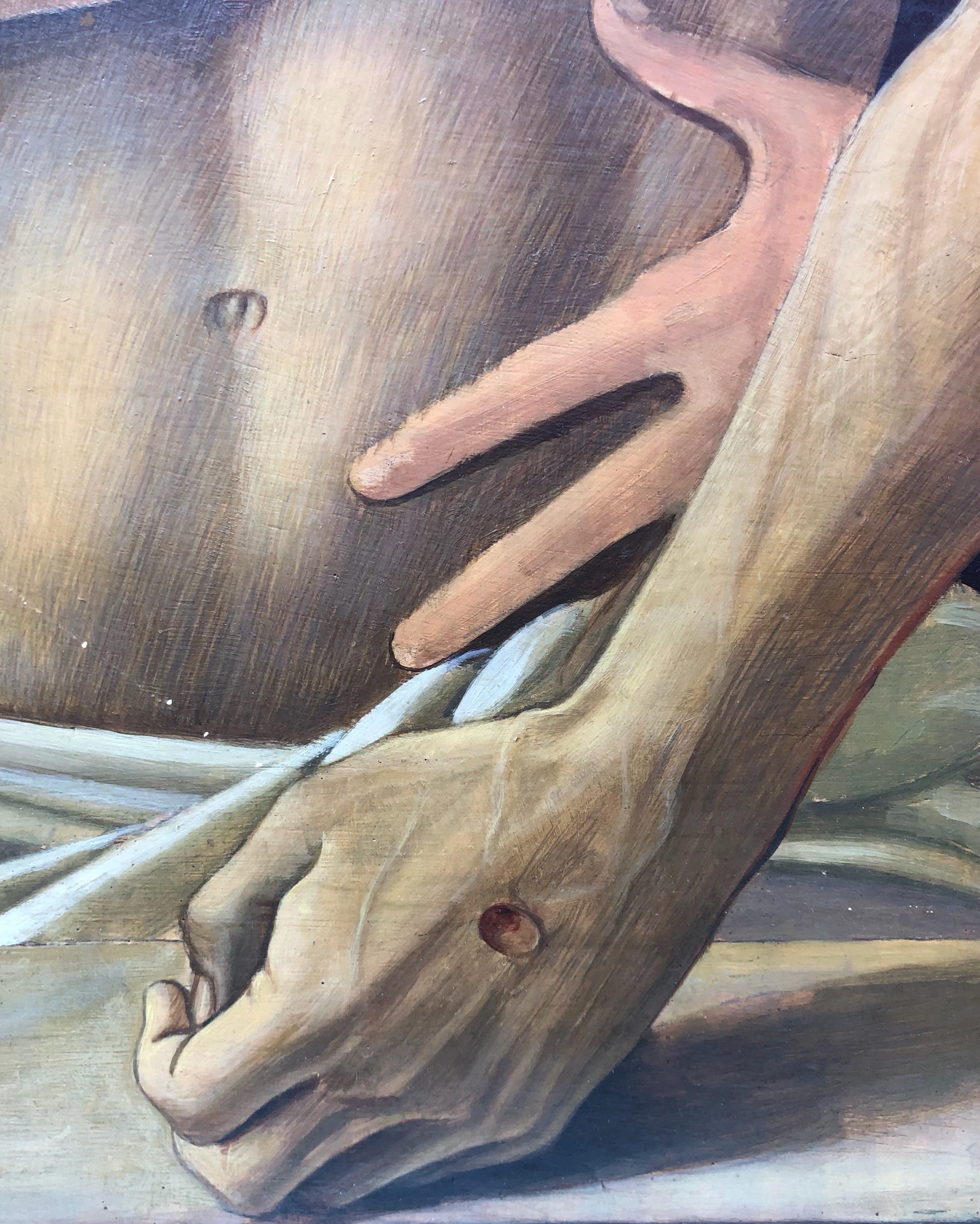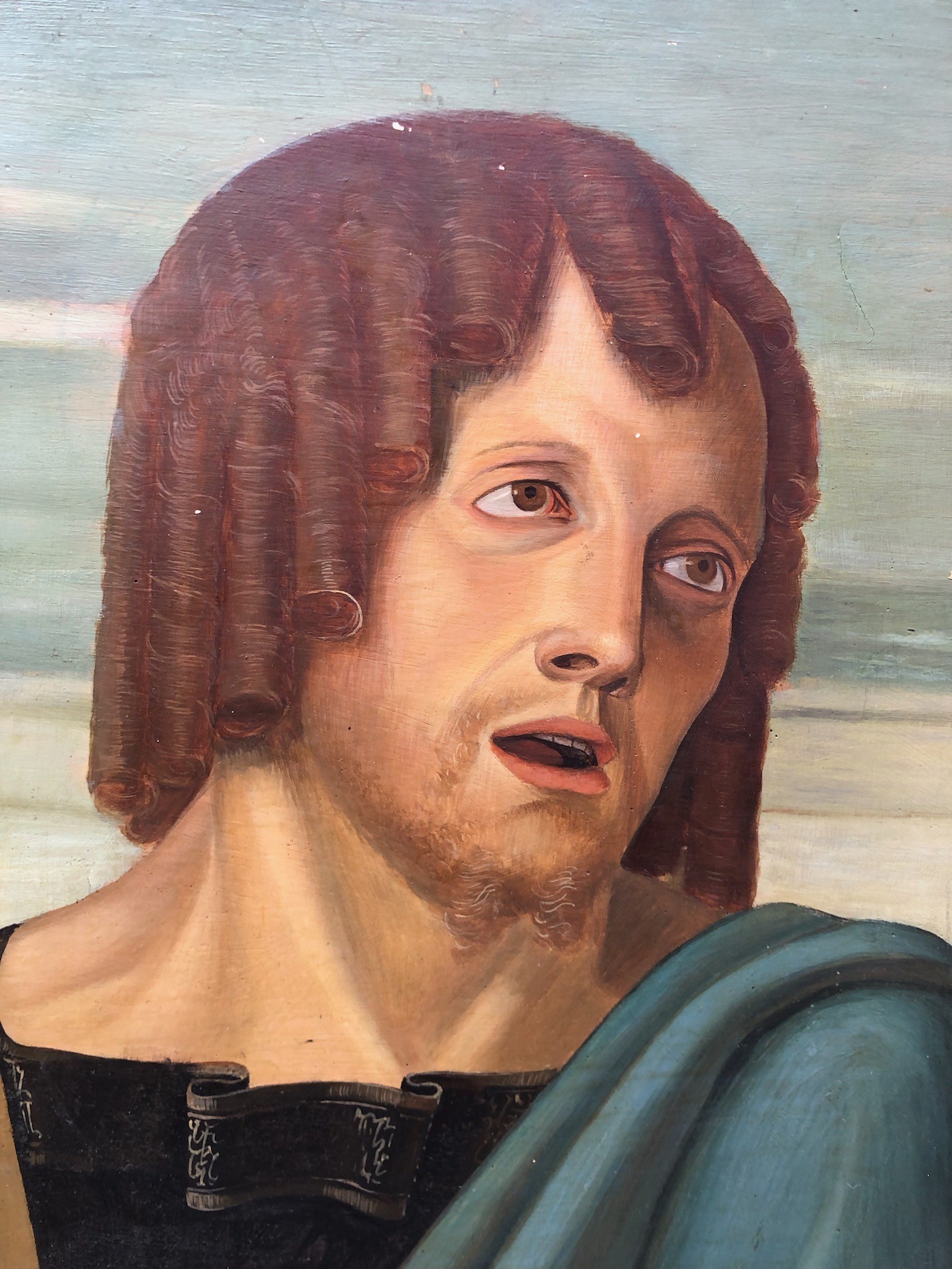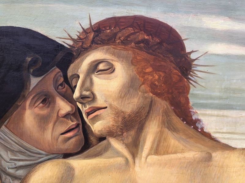 Si tratta di una vecchia copia di ottima qualità del capolavoro del Bellini dipinto tra il 1465 e 1470 circa e conservato nella Pinacoteca di Brera. Anche le misure della tavola qui presentata (cm 99,5 x 79) differiscono di poco da quelle dell’originale (cm 107 x 86) Una fêlure orizzontale al centro.