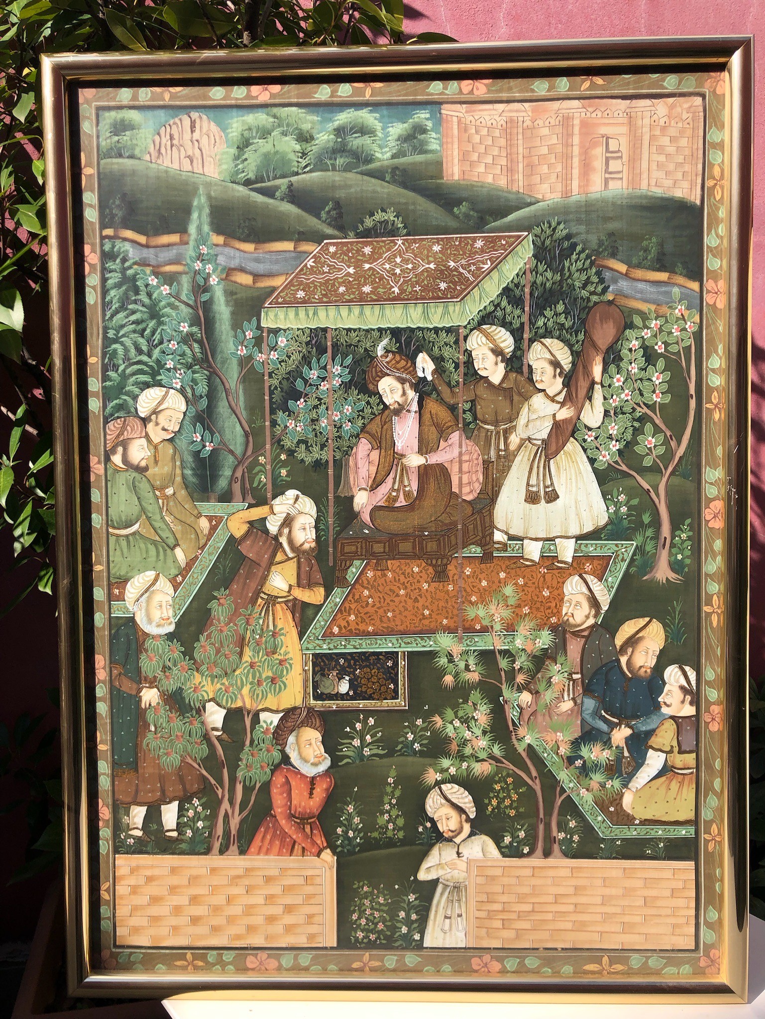 GRANDE PANNELLO DIPINTO CON MARAJA E DIGNITARI