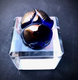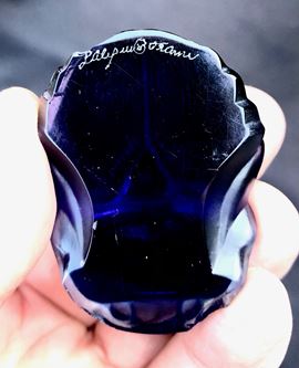 di colore blu intenso con riflessi dorati, firma incisa alla mola sotto la base