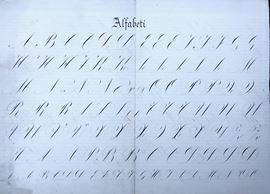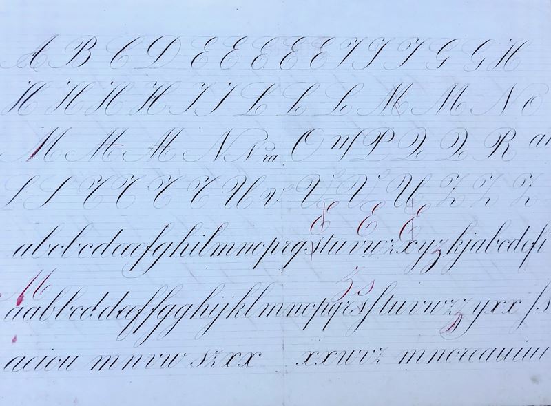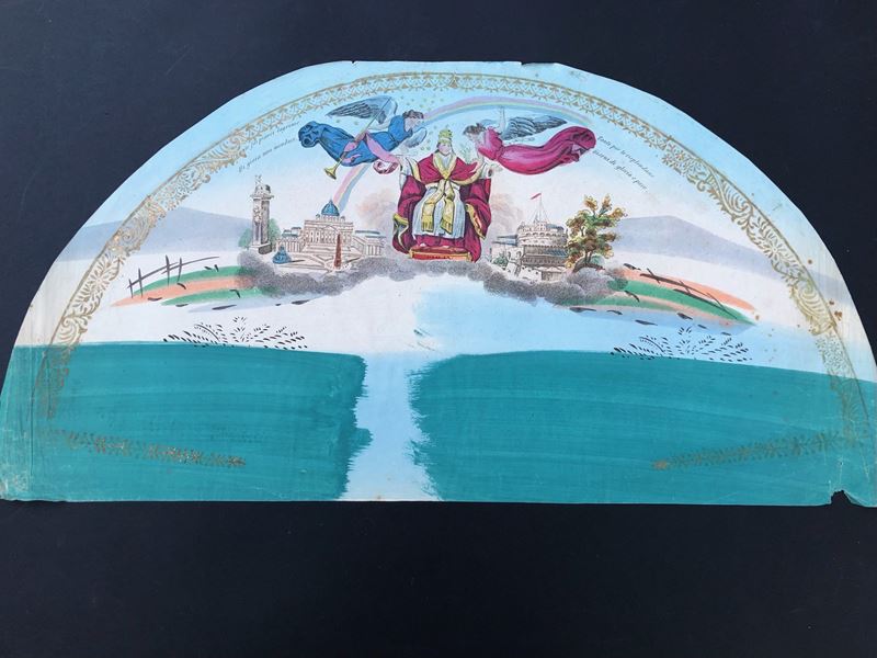 Inclusa una litografia religiosa a forma di ventaglio colorata a mano e una grande prova di calligrafia avente dimensioni cm 66 x 48,5