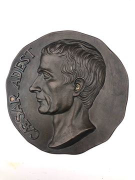 il motto “CAESAR ADEST” (Cesare è qui) che compare in rilievo sulla placca sopra il profilo del condottiero Romano fu adottato dalla nave da battaglia Giulio Cesare dal 1920 fino al 1933.