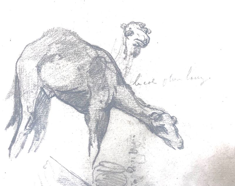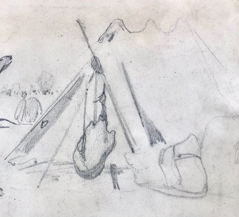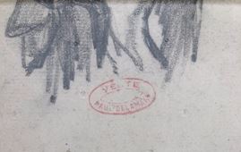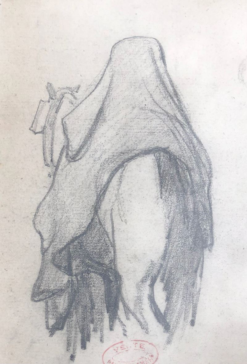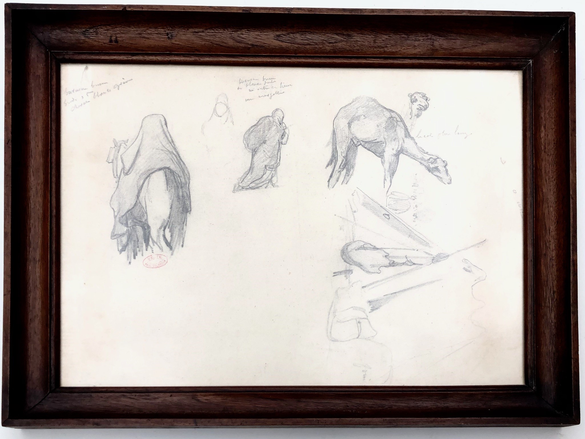 studi a matita su carta entro bella cornice in rovere dell’800. Appunti autografi dell’autore e timbro della vendita Delamain