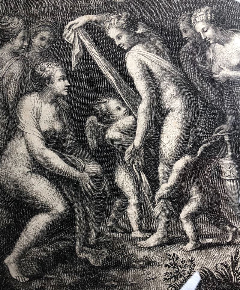 PHIILIPPE SIMONNEAU (1685-1753) GRANDE INCISIONE, Le tre dee si preparano al giudizio di Paride, 1729