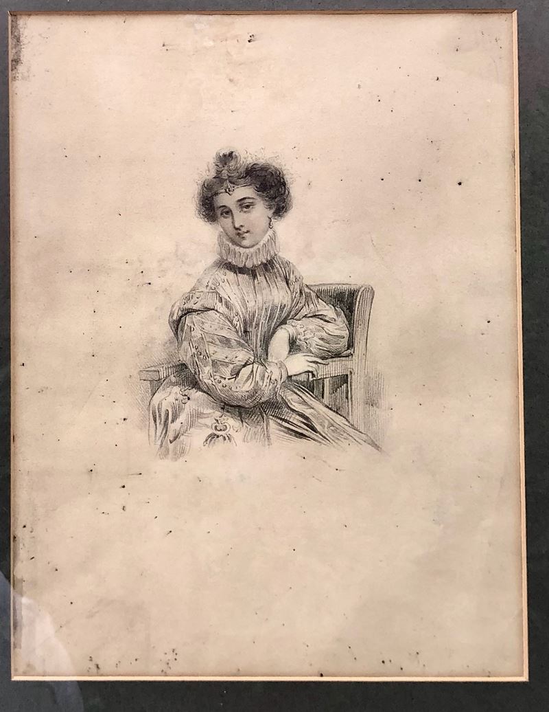 PITTORE DEL XIX SECOLO, RITRATTO DI FANCIULLA IN ABITI SEICENTESCHI