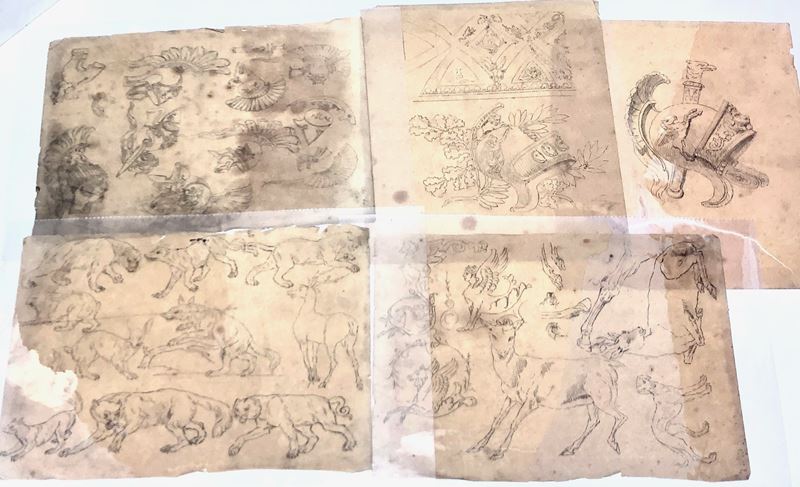 PITTORE NEOCLASSICO, 7 LUCIDI CON NUMEROSI PERSONAGGI E FREGI