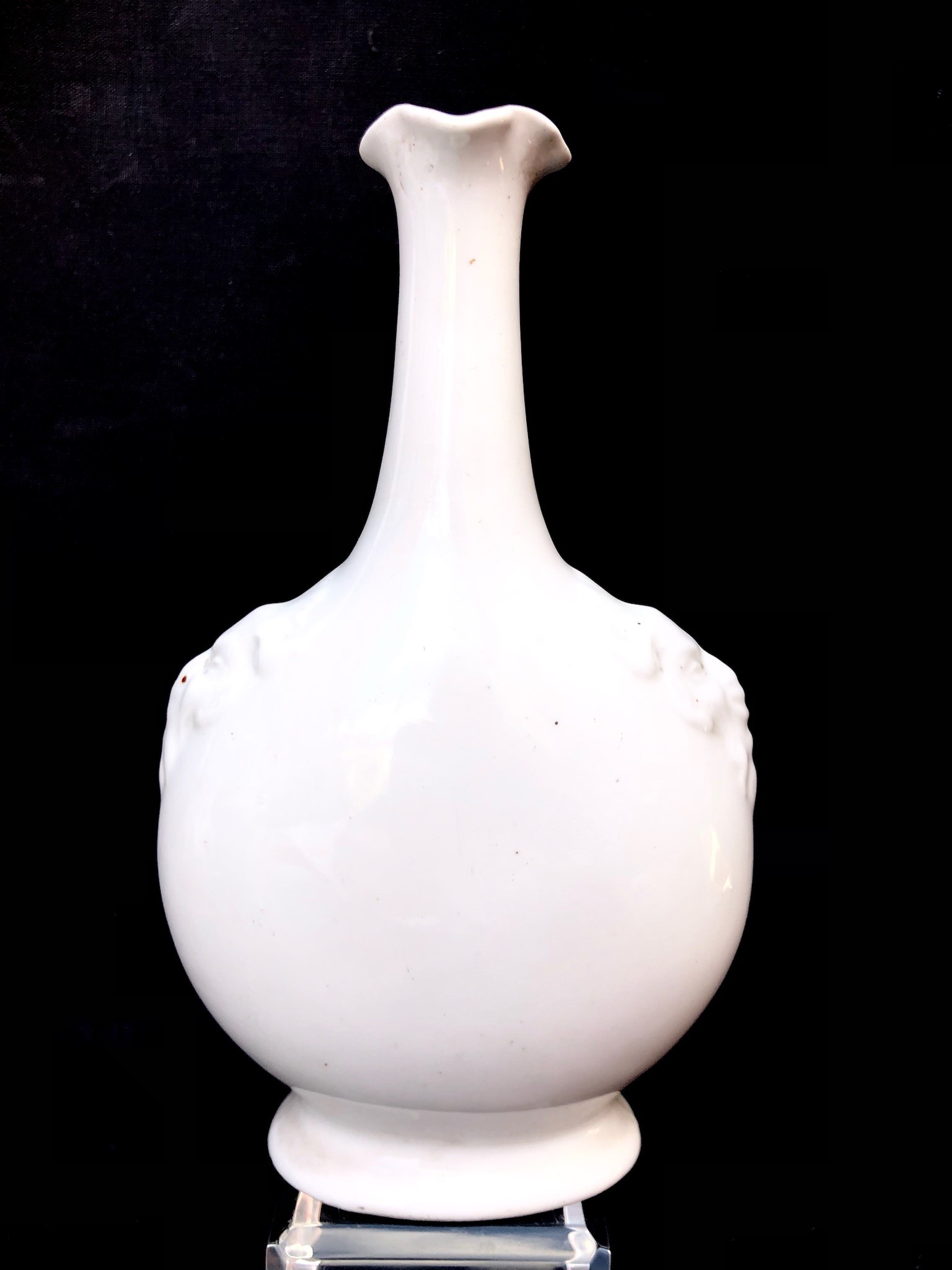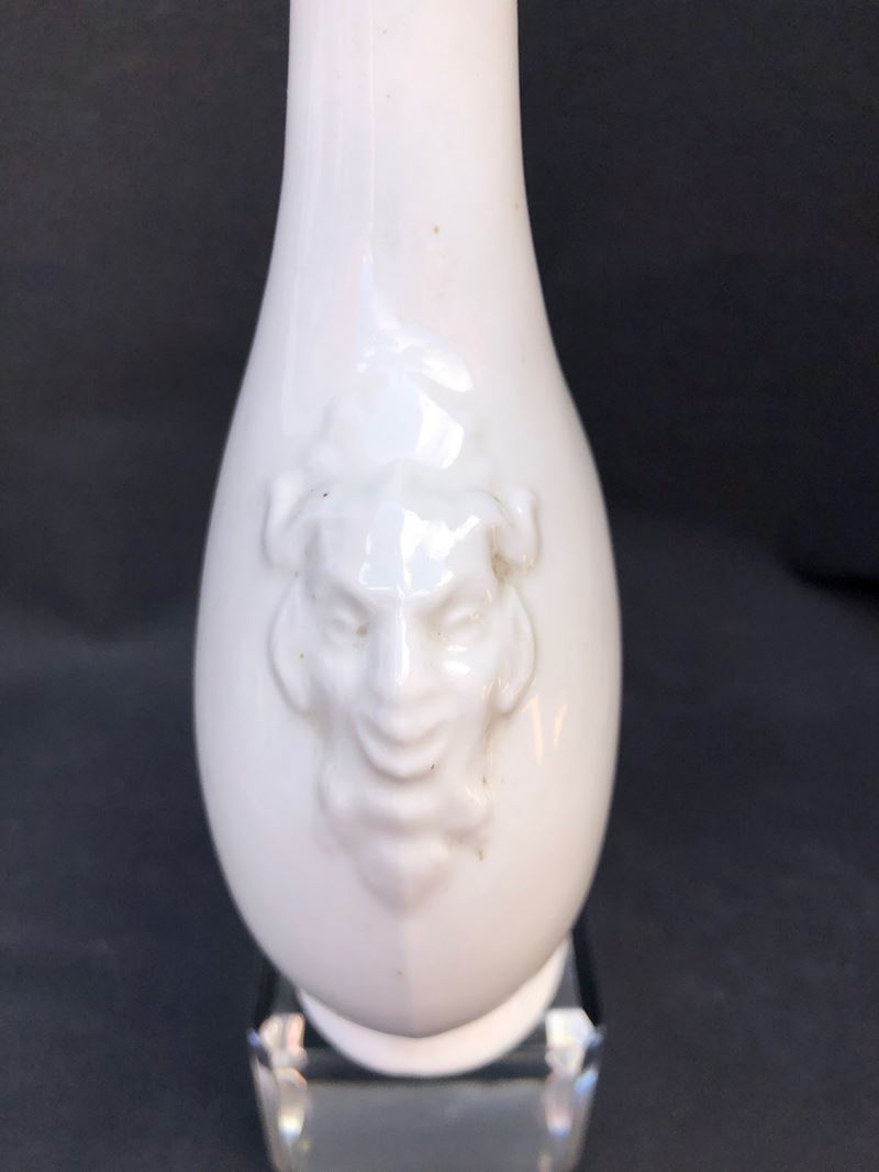 RARA FIASCHETTA GINORI IN PORCELLANA BIANCA DECORATA CON MASCHERONI. XIX SECOLO