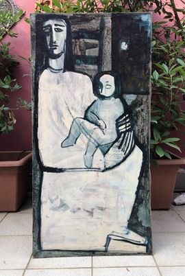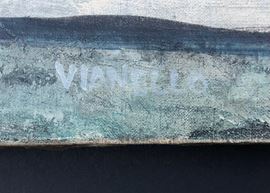 firmato in basso a sinistra. Nato a Milano nel 1915, Vianello partecipò a numerose esposizioni tra cui: Premio Marzotto del 1954; 66° Exposition Gran Palais des Arts Parigi 1955 (su invito); Palazzo delle Esposizioni di Roma 1956, V Premio Bergamo 1959. Nell’opera qui presentata l’artista risente fortemente - specie nella figura femminile - della schematica monumentalità di Sironi. Cfr Riccardo Vianello, Megalini Editrice