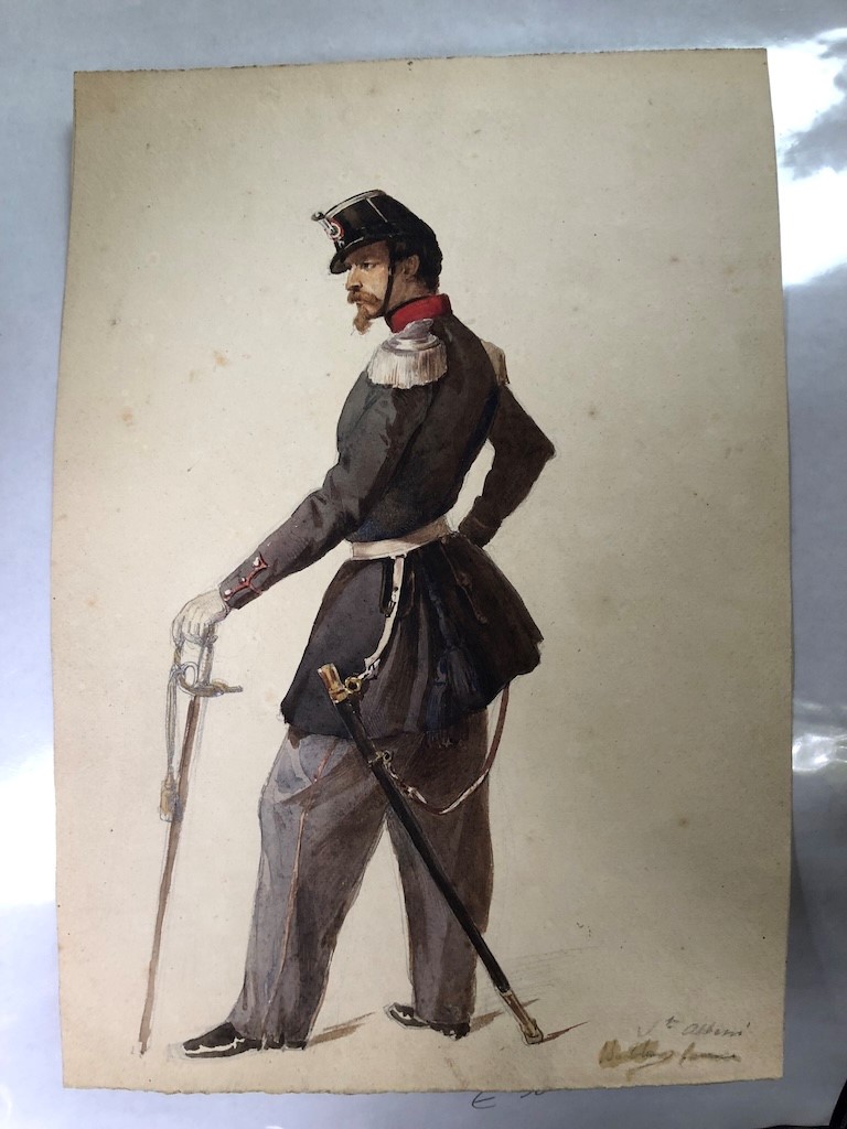 SOLDATO. ACQUERELLO META’ XIX SECOLO