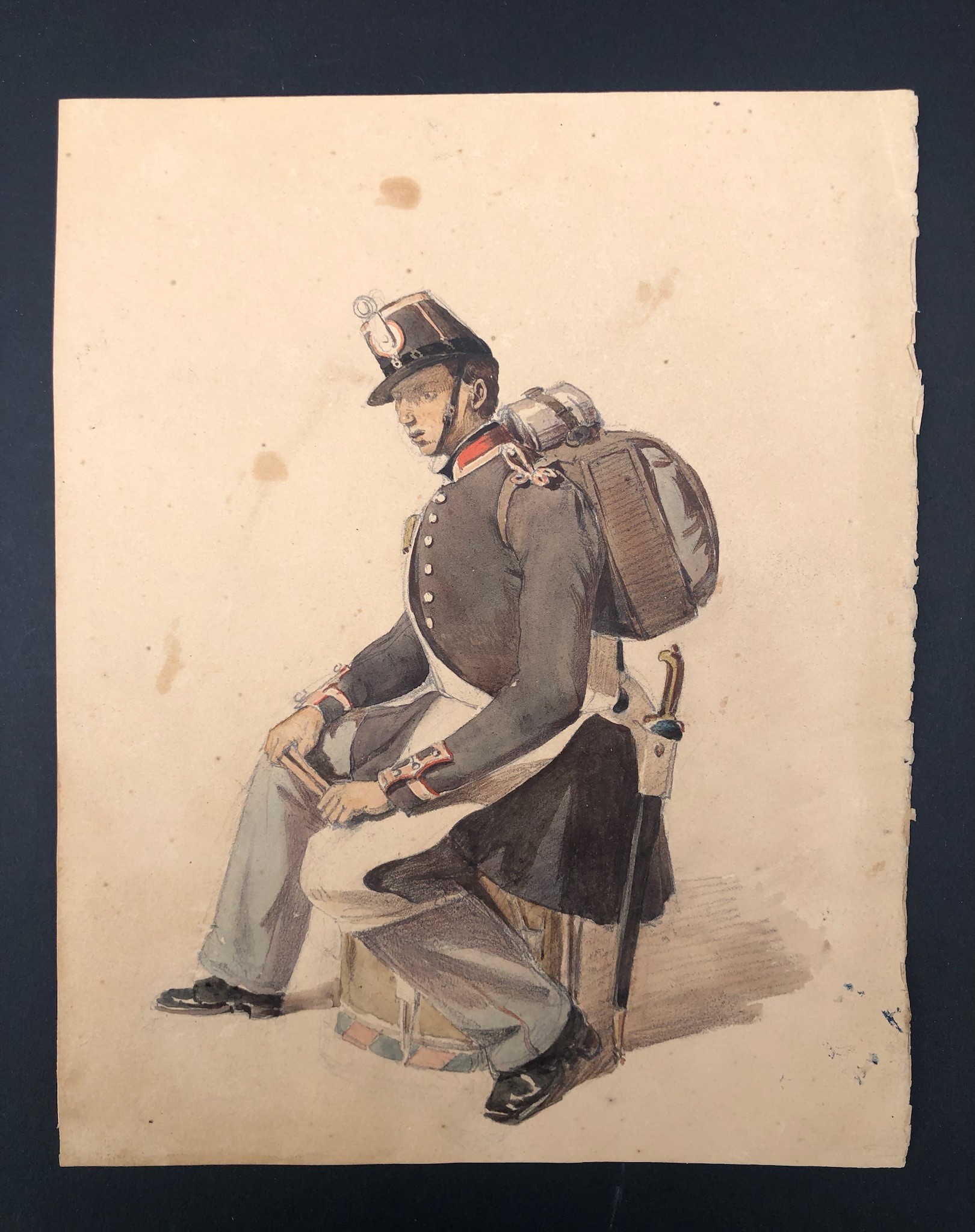 TAMBURINO. ACQUERELLO, METÁ XIX SECOLO