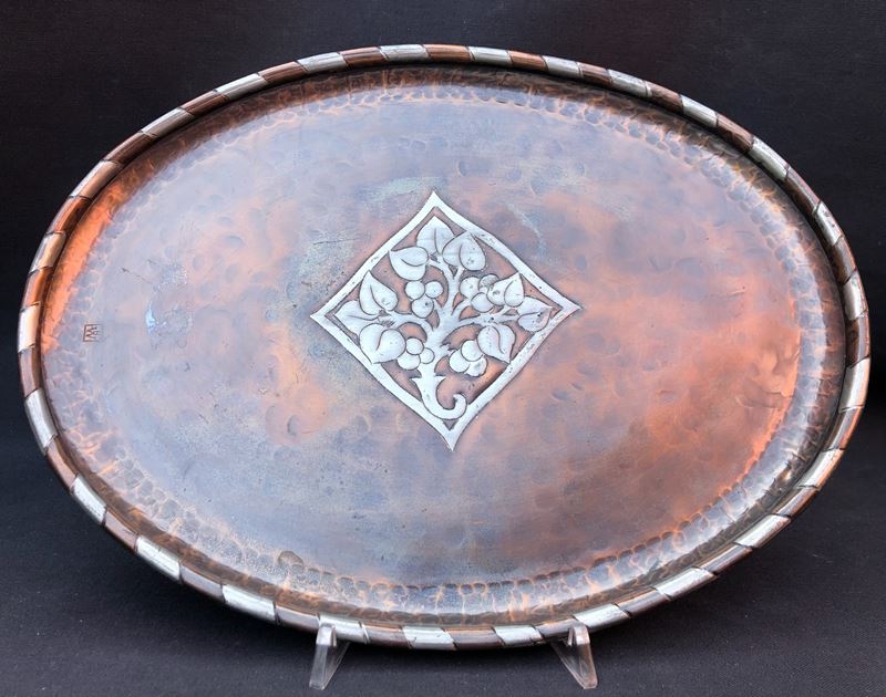 VASSOIO IN RAME SBALZATO E ARGENTATO. MARCA INCUSSA. PEZZO UNICO (VIENNA?)