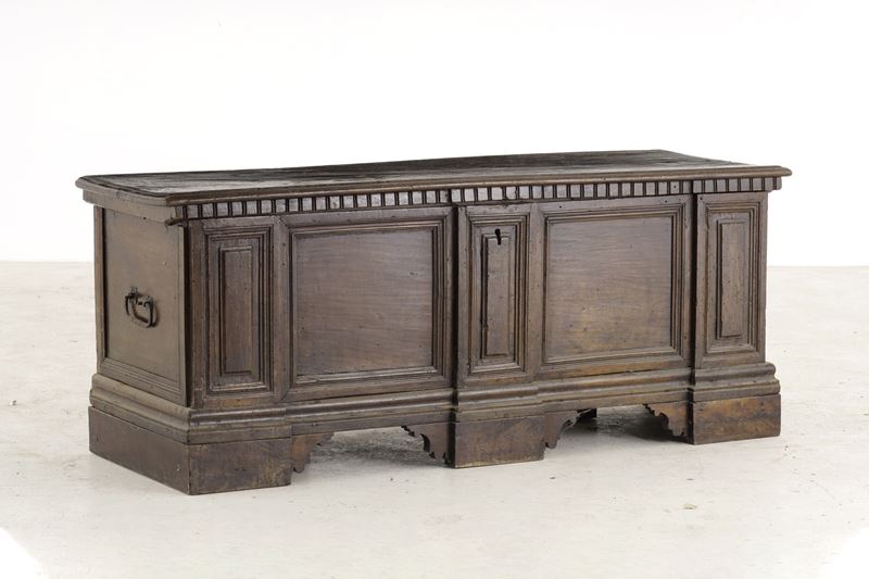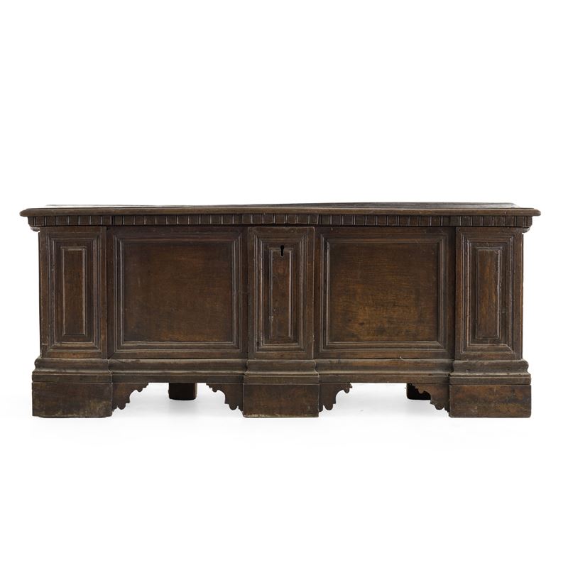 Cassapanca in legno intagliato. XVII-XVIII secolo