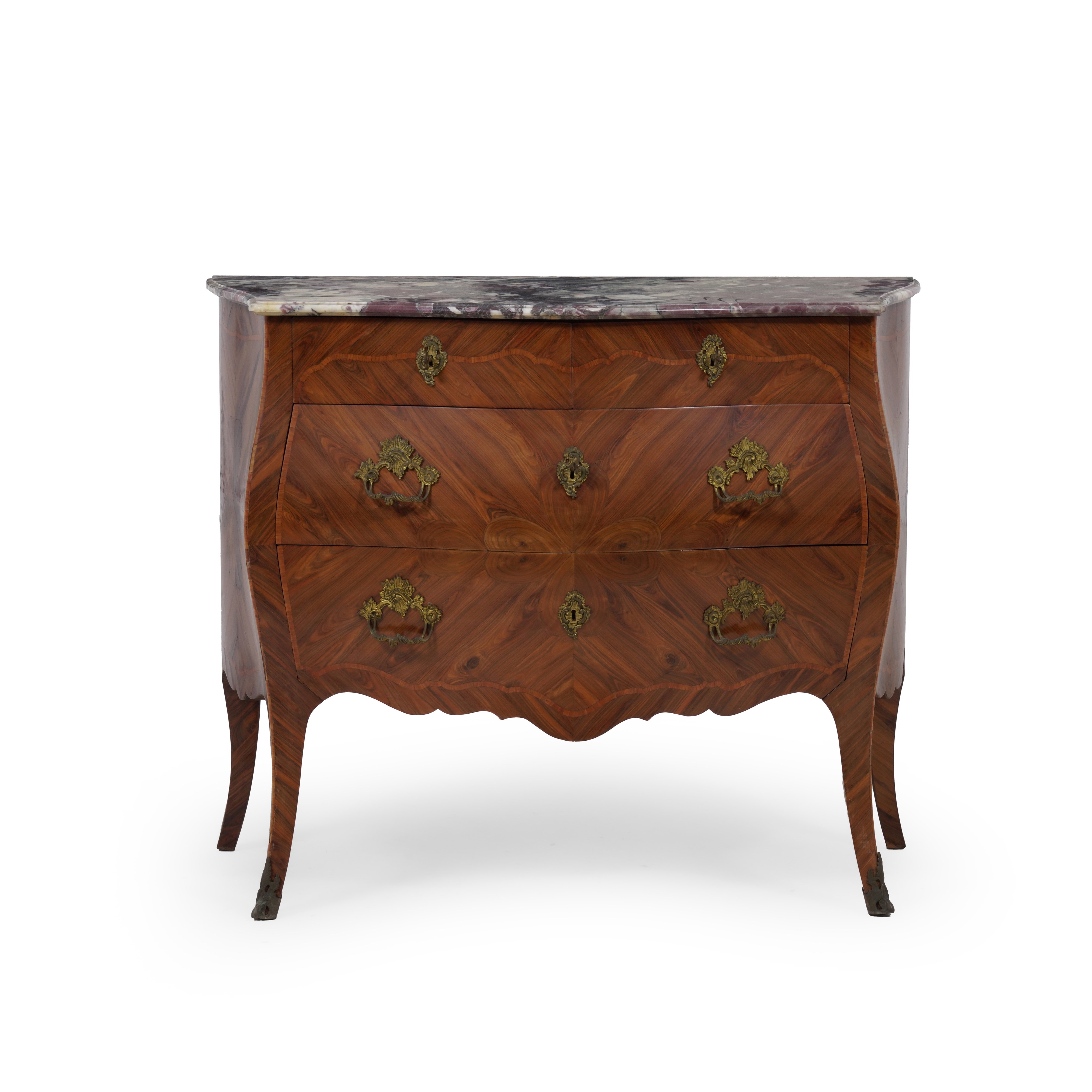 Cassettone lastronato in palissandro e filettato in stile Luigi XV