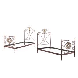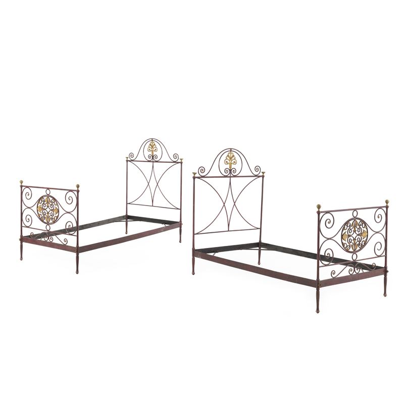 Coppia di letti in ferro battuto. XIX-XX secolo