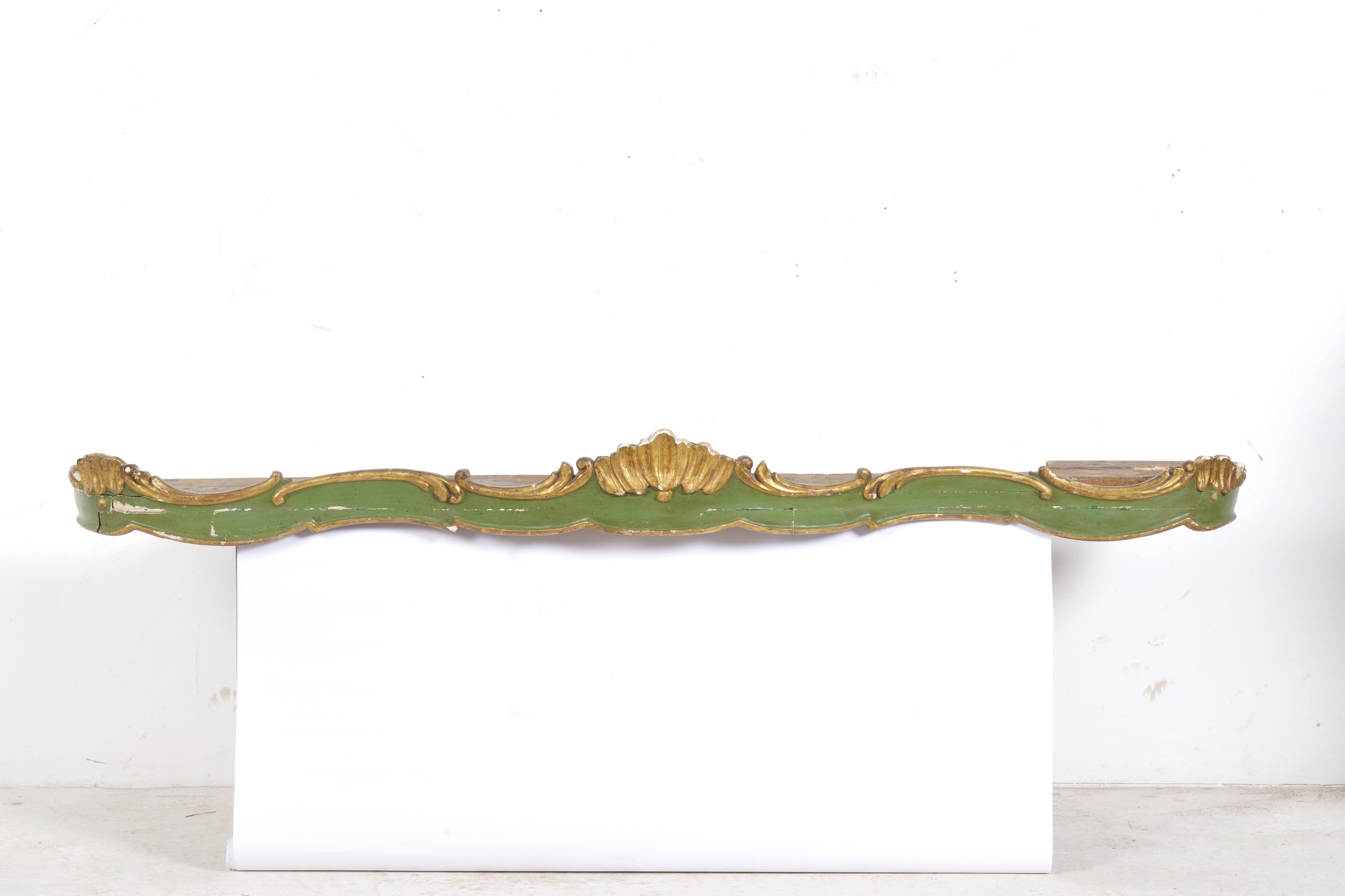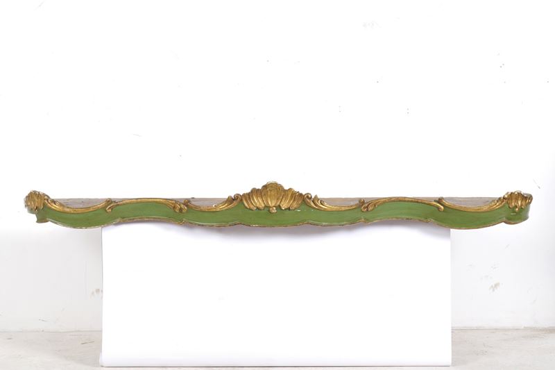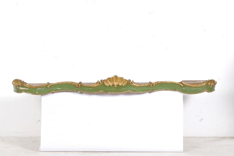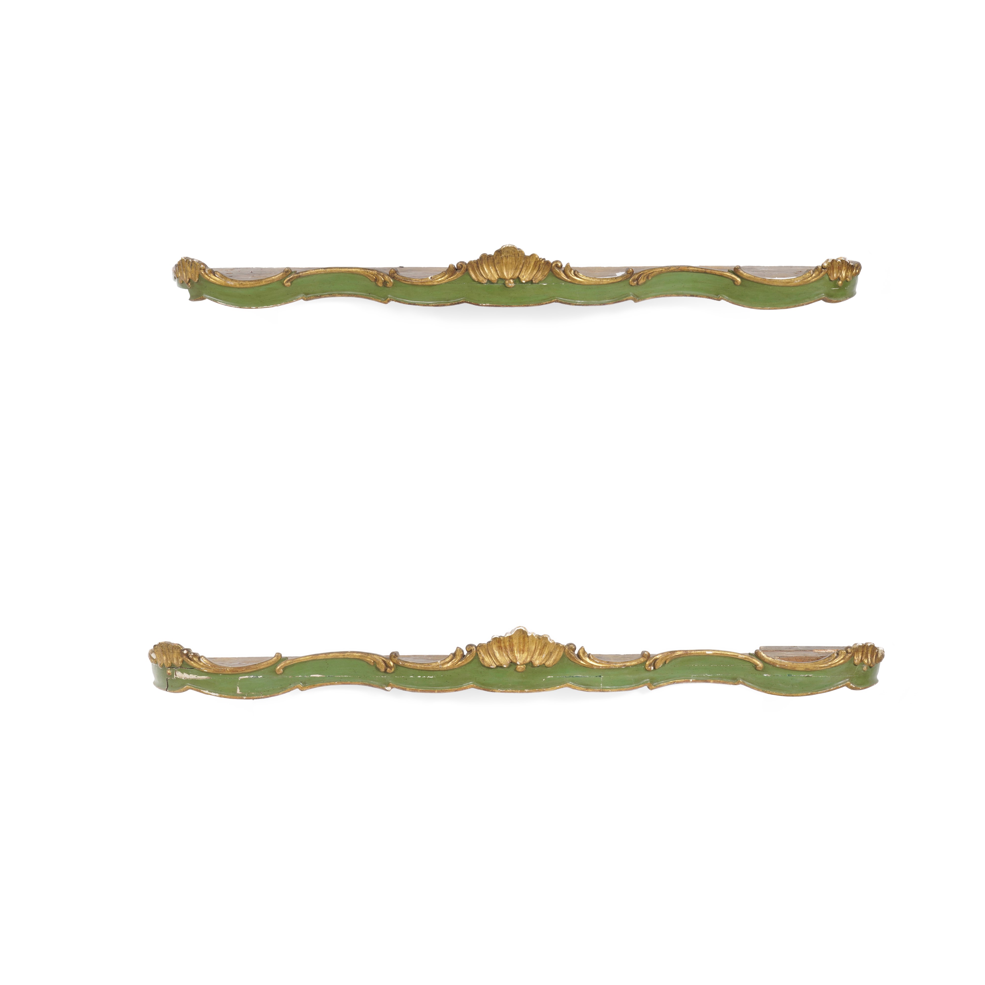 Coppia di mantovane in legno laccato verde e dorato. XVIII secolo