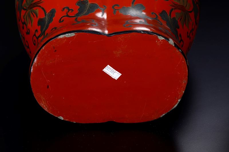 Coppia di vasi in lacca rossa. Cina, XX secolo