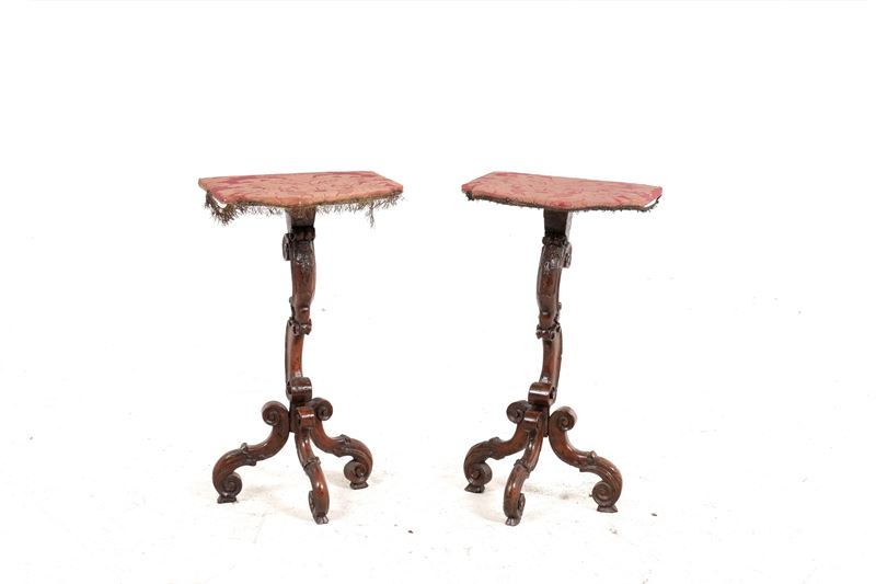 Tripodi con piedi a volute, fusto mosso, piano sagomato