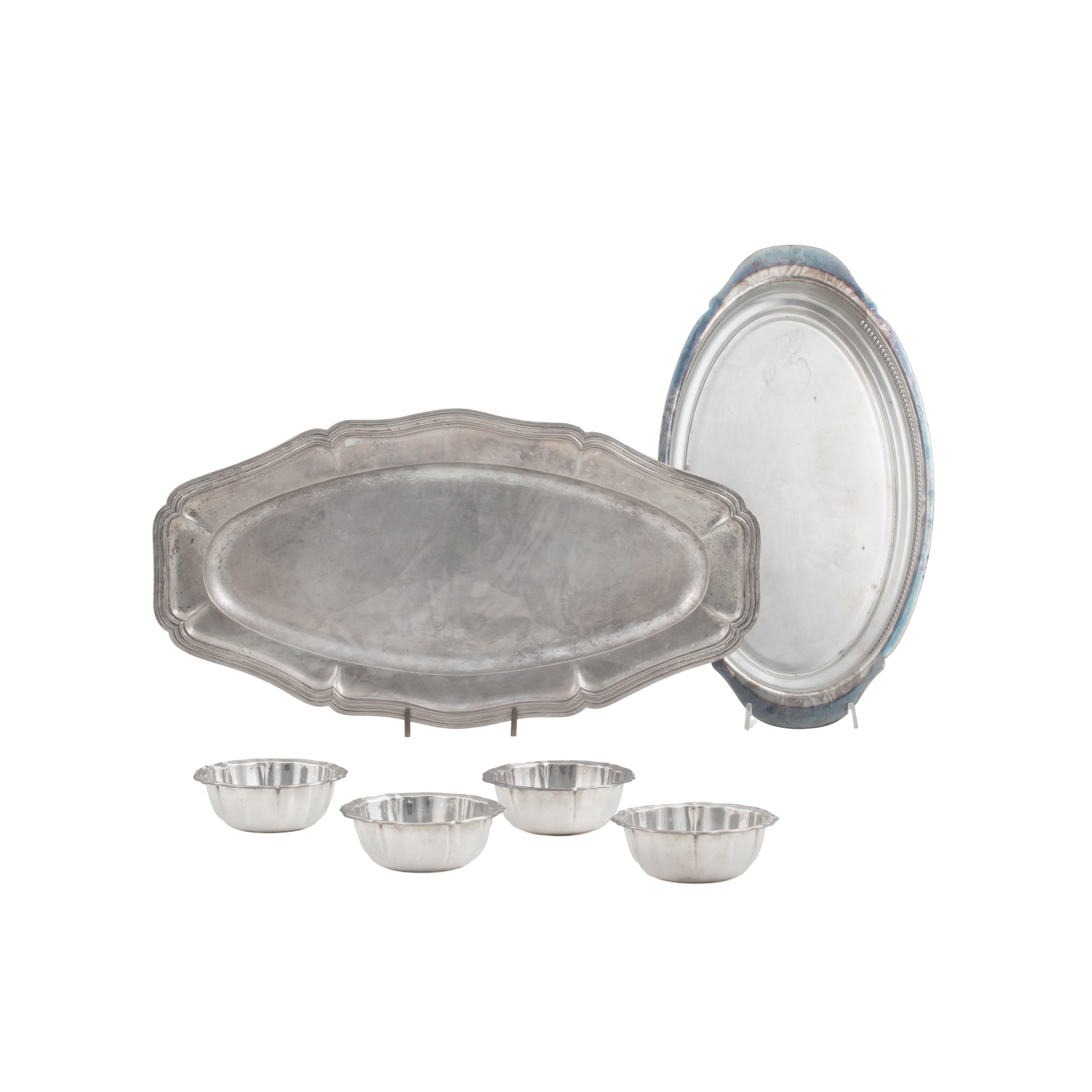 Un vassoio con bordo traforato, l'altro con bordo mistilineo, coppette con bordo mistilineo